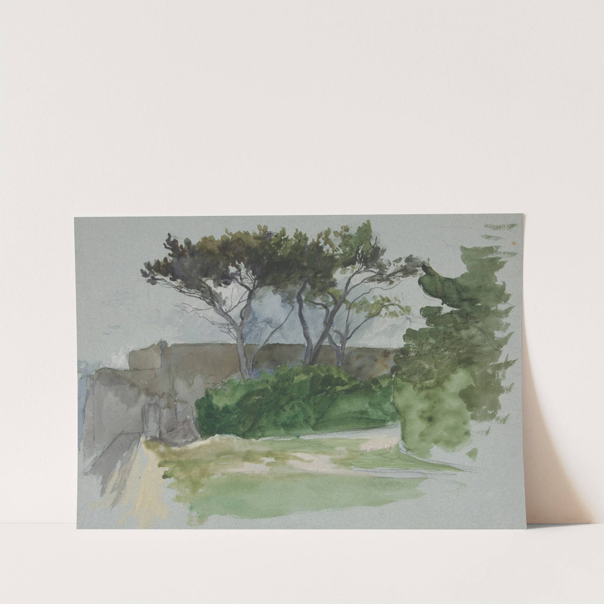 Study of landscape with trees and stone wall by Edwin Austin Abbey - Wall Art Print