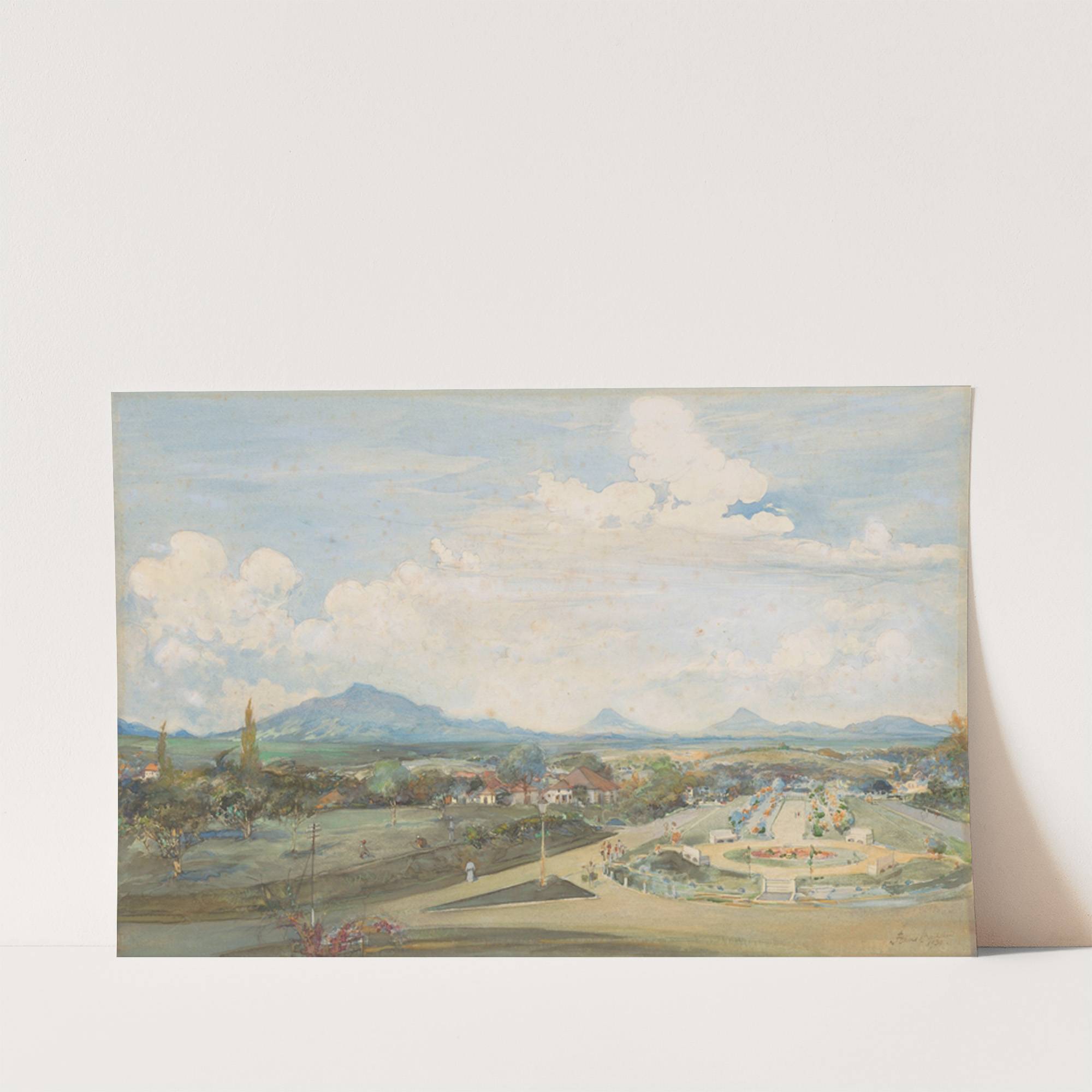 Tillemaplein te Semarang met op de achtergrond de vulkanen Sindoro en Soembing by Frans Bakker - Wall Art Print