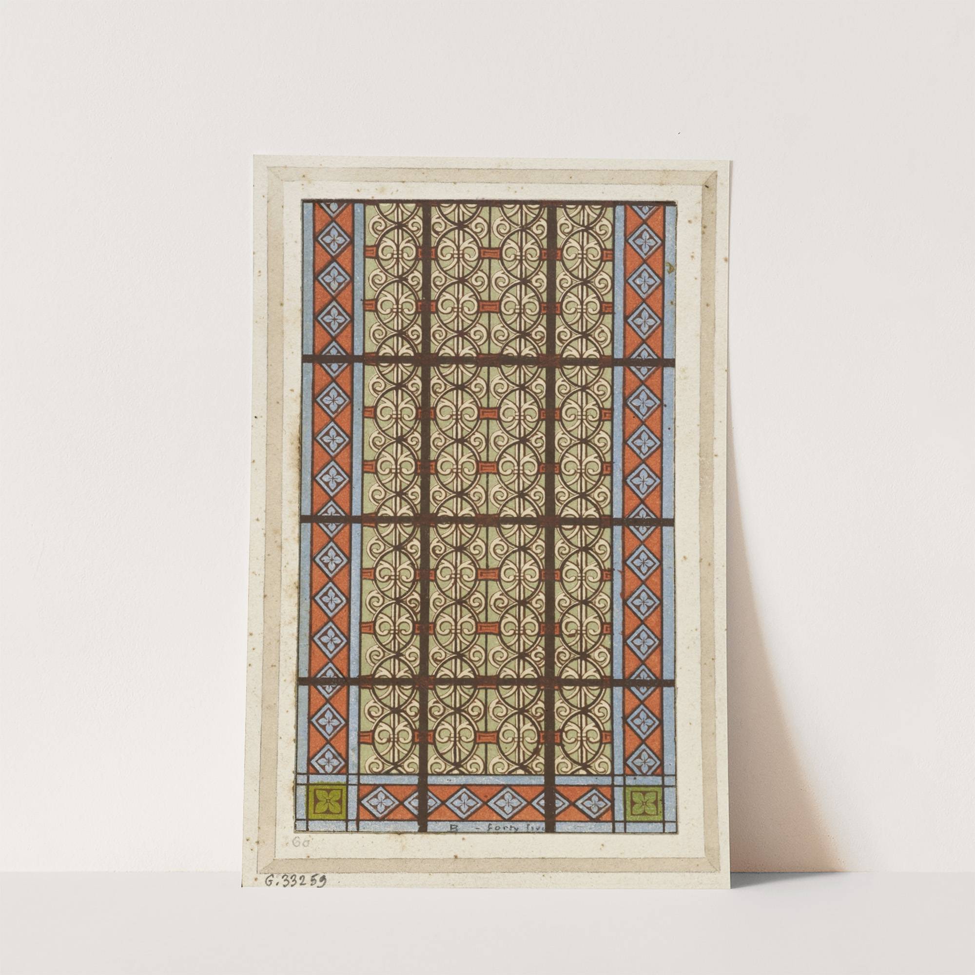 Détail de vitrail (partie inférieure de fenêtre) entrelacs sur fond gris, entourage à fond rouge by Laurent Gsell - Wall Art Print