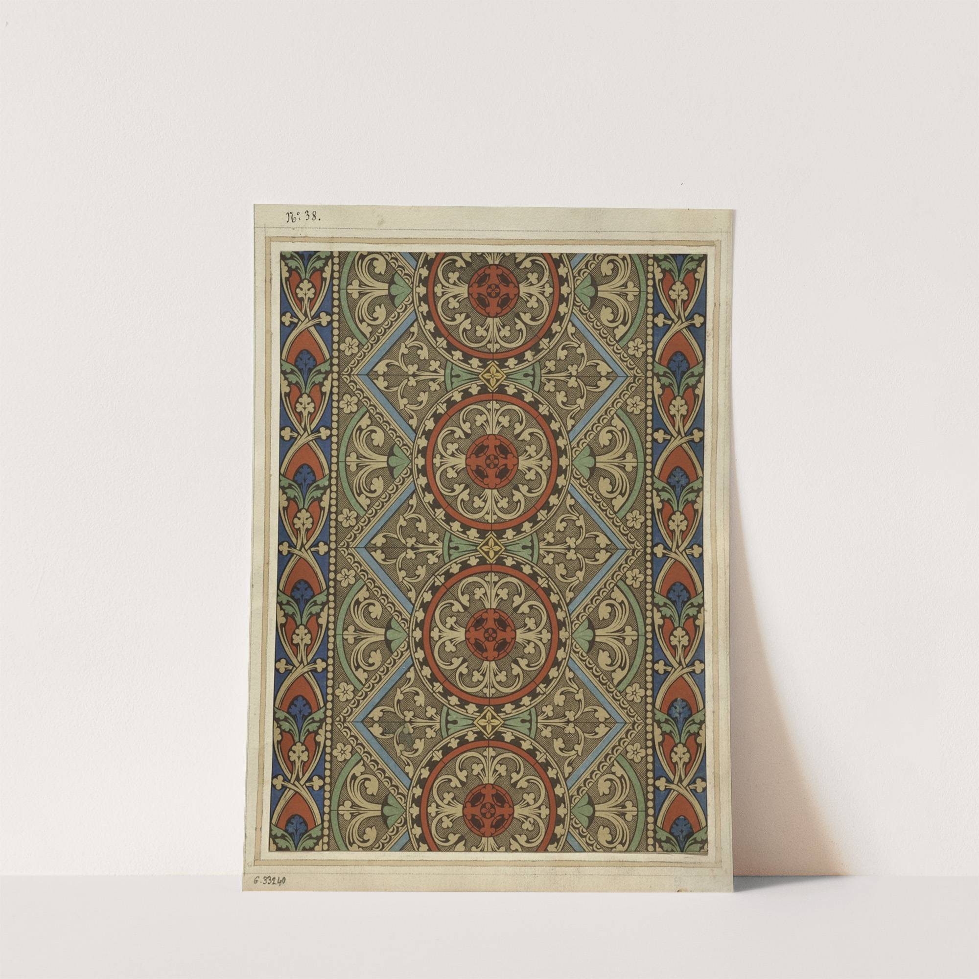 Détail d’une fenêtre rosaces rouges sur fondgris, entourage à fond bleu et rouge by Laurent Gsell - Wall Art Print