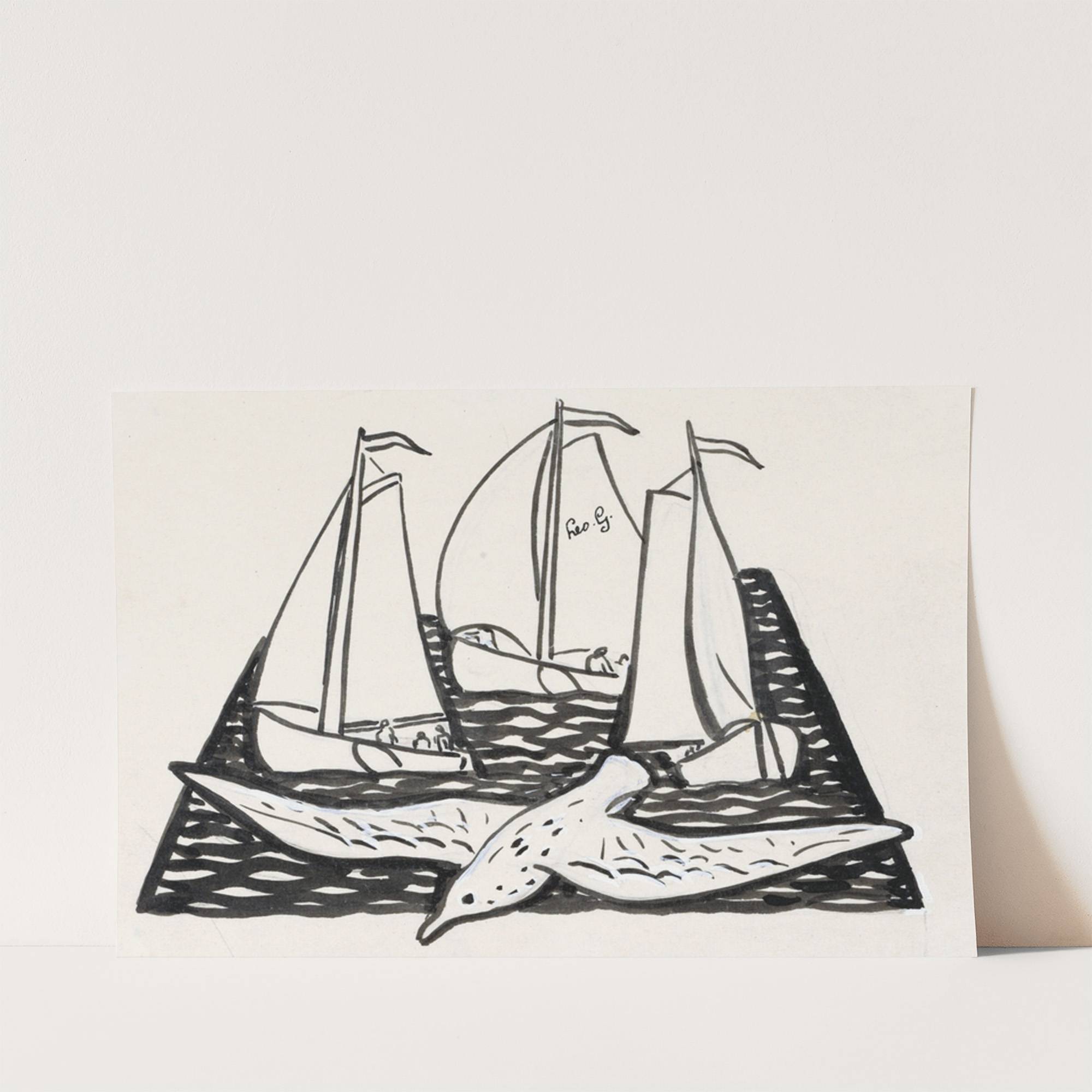 Drie zeilschepen en een meeuw by Leo Gestel  - Wall Art Print