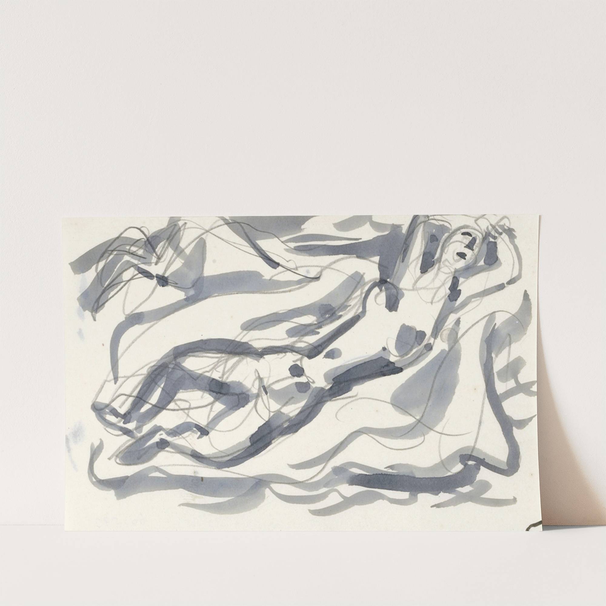 Ontwerp voor een vignet; naakte vrouw en paard met op de achtergrond de zee by Leo Gestel  - Wall Art Print