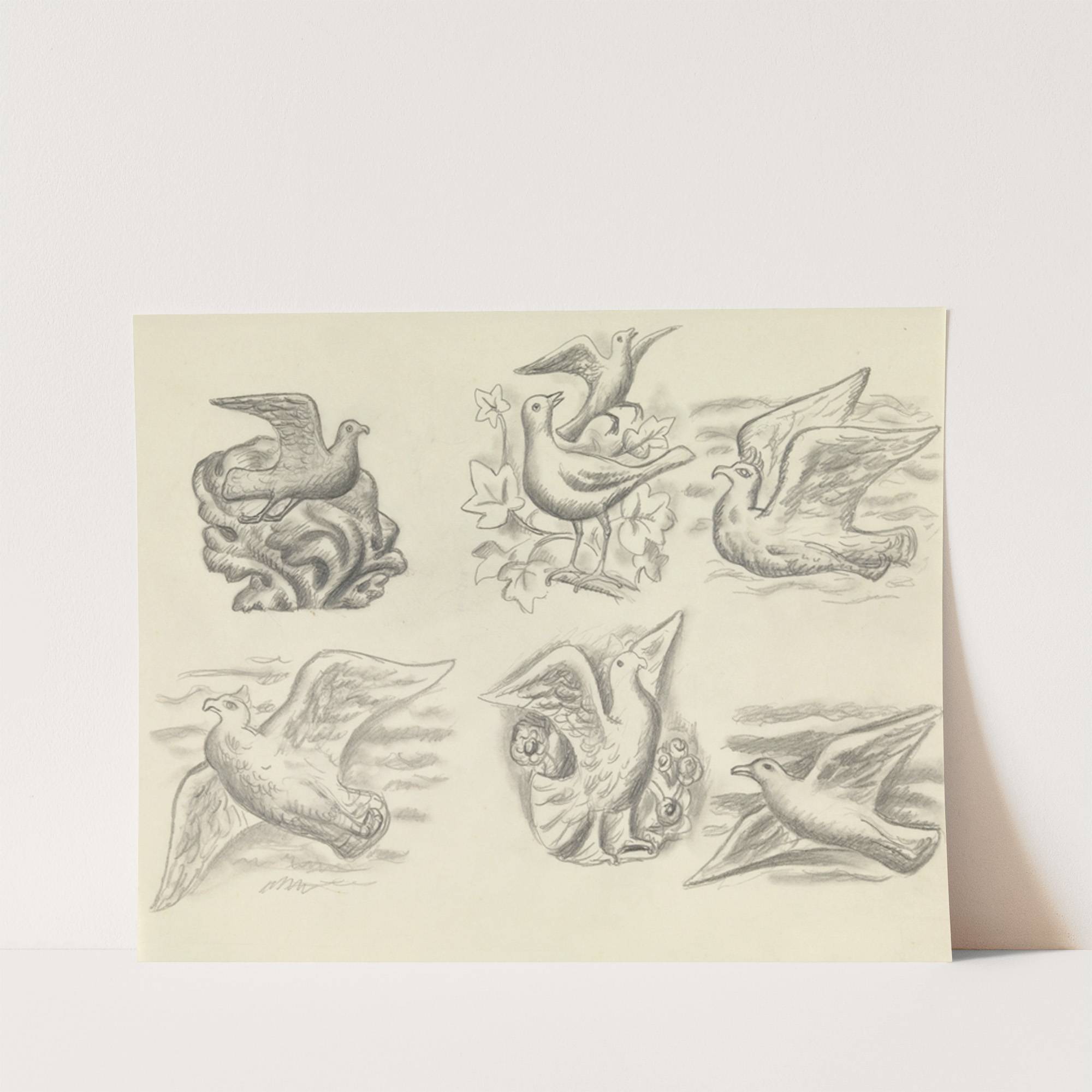 Ontwerpen voor een watermerk van een bankbiljet; zes ontwerpen met vogels by Leo Gestel - Wall Art Print