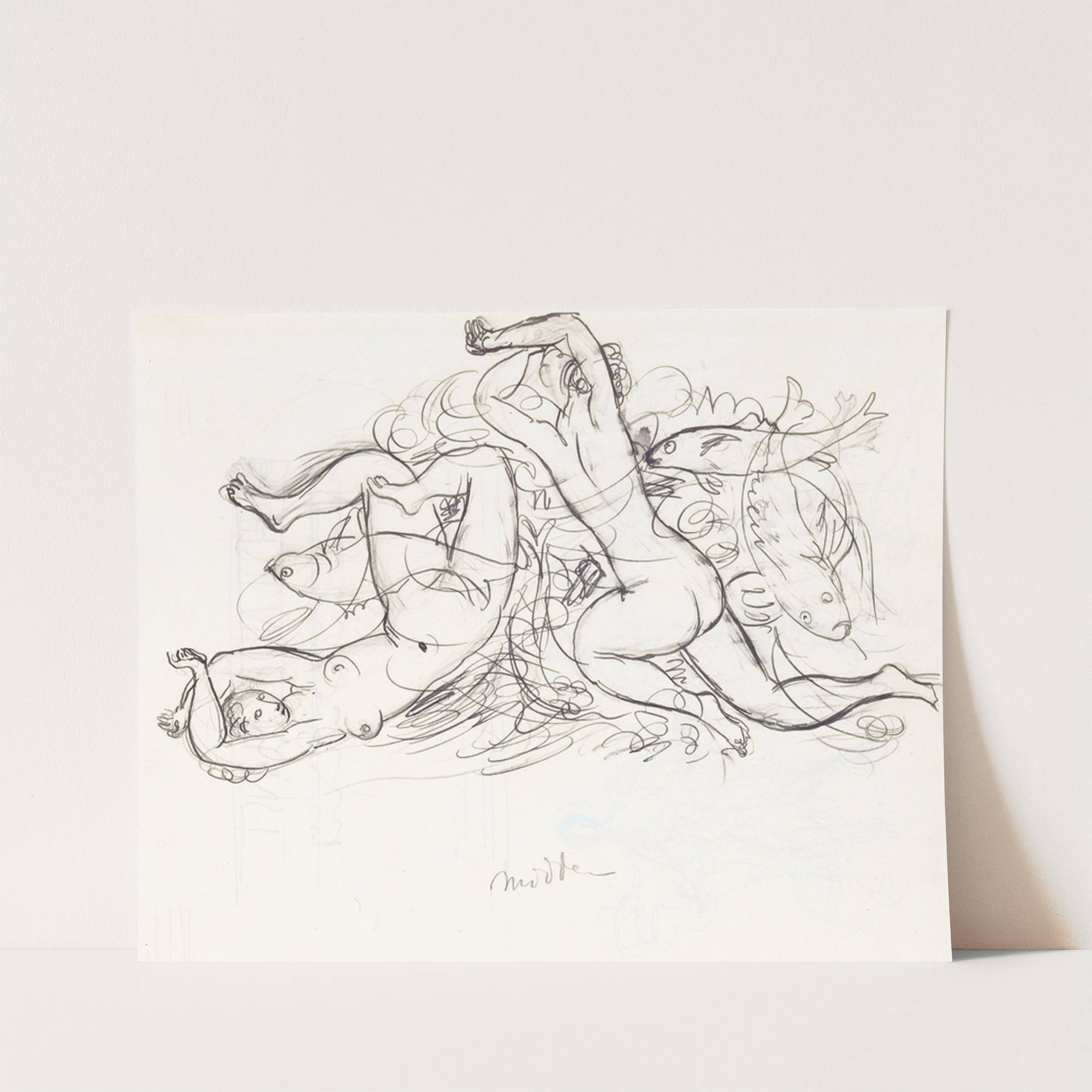 Schetsblad met naakt zwemmende vrouwen en vissen by Leo Gestel  - Wall Art Print