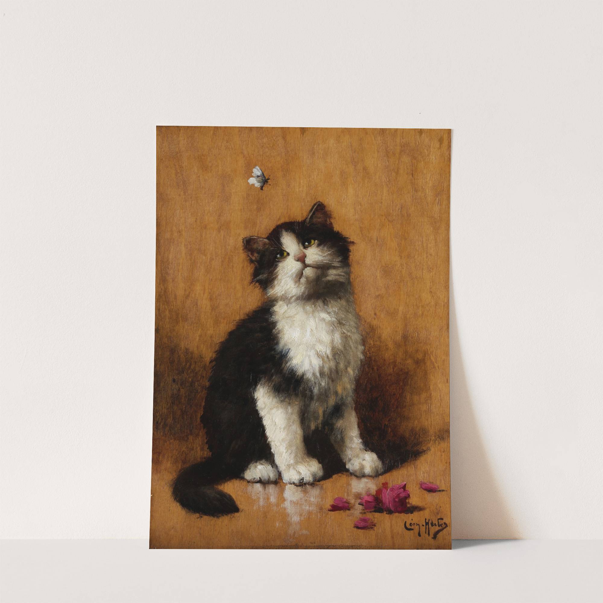 Kätzchen mit Schmetterling by Léon Huber - Wall Art Print