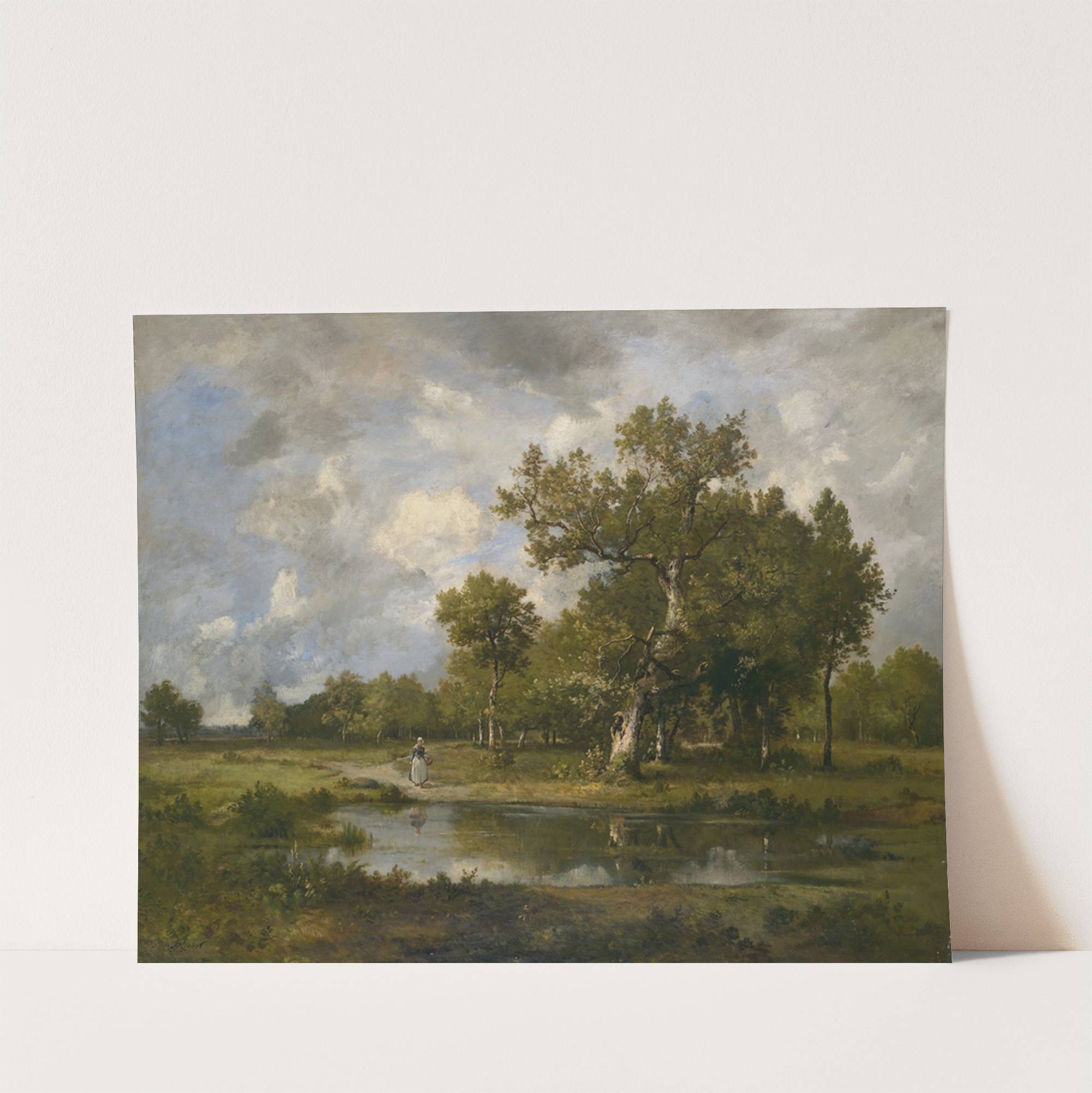 Bachlandschaft mit Wanderin by Leon Richet - Wall Art Print