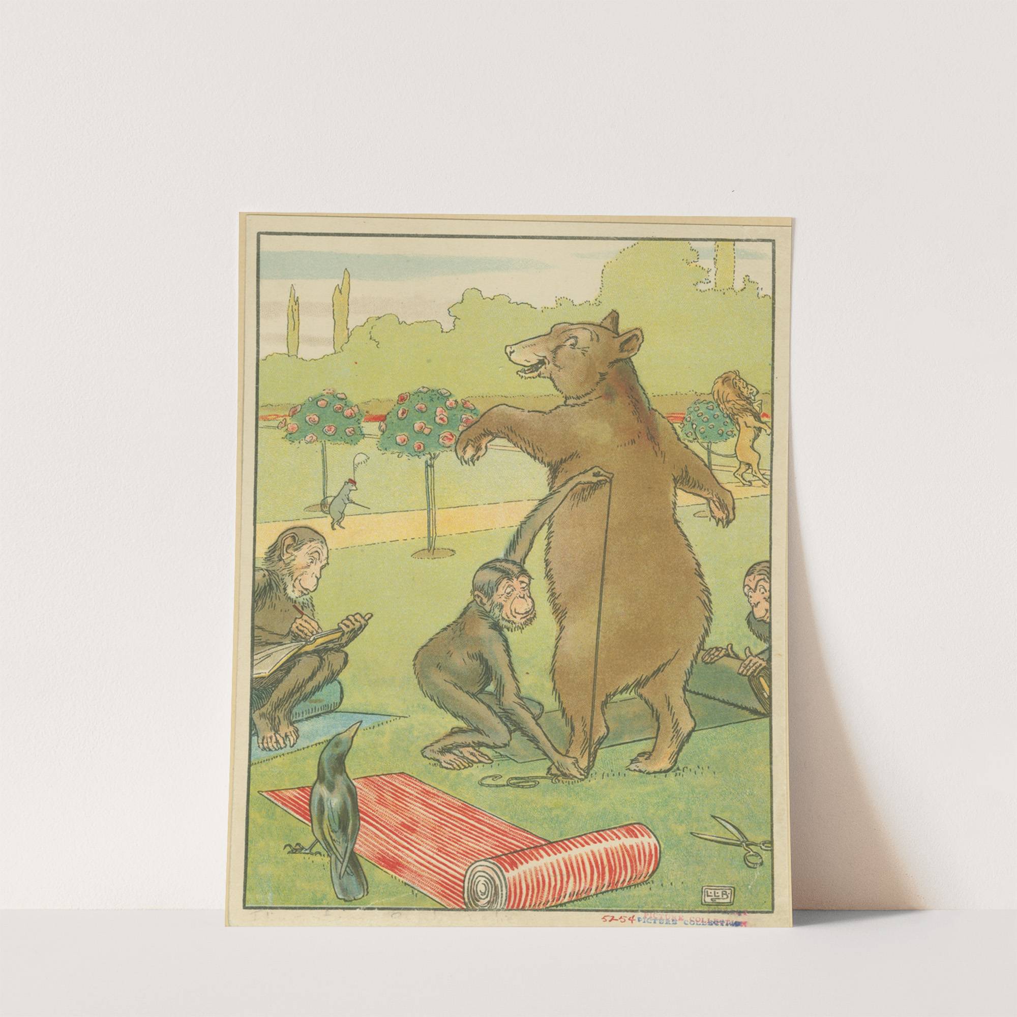Bear gets measured. by Leonard Leslie Brooke - Wall Art Print