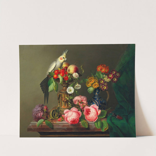 Still Life with Roses, Fruit, Cockatiel and Stag Beetle by Leopold Brunner the Elder - Wall Art Print