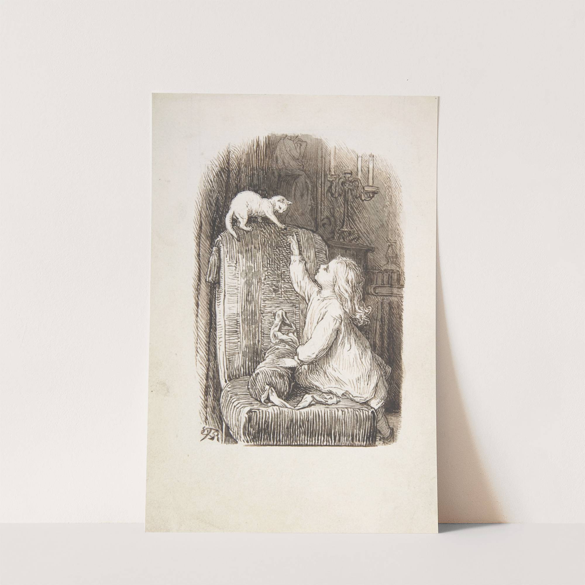 Child Climbing a Chair to Reach for a Kitten (1835–1903) by Lorenz Frølich - Wall Art Print