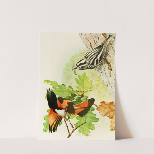 Black And White Warbler, American Redstart by Louis Agassiz Fuertes - Wall Art Print