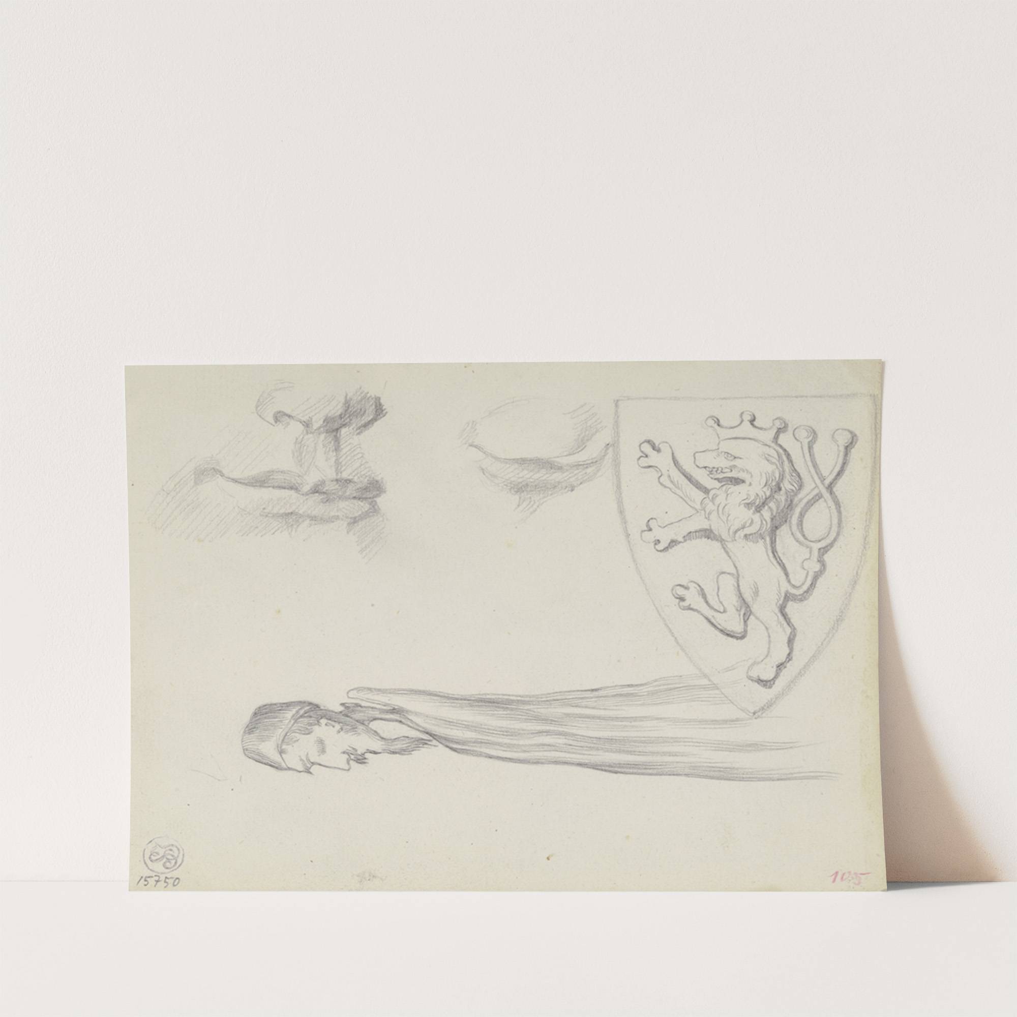 Studienblatt; Wappen, Türkenkopf und Gesichtsdetail by Louis Eysen - Wall Art Print
