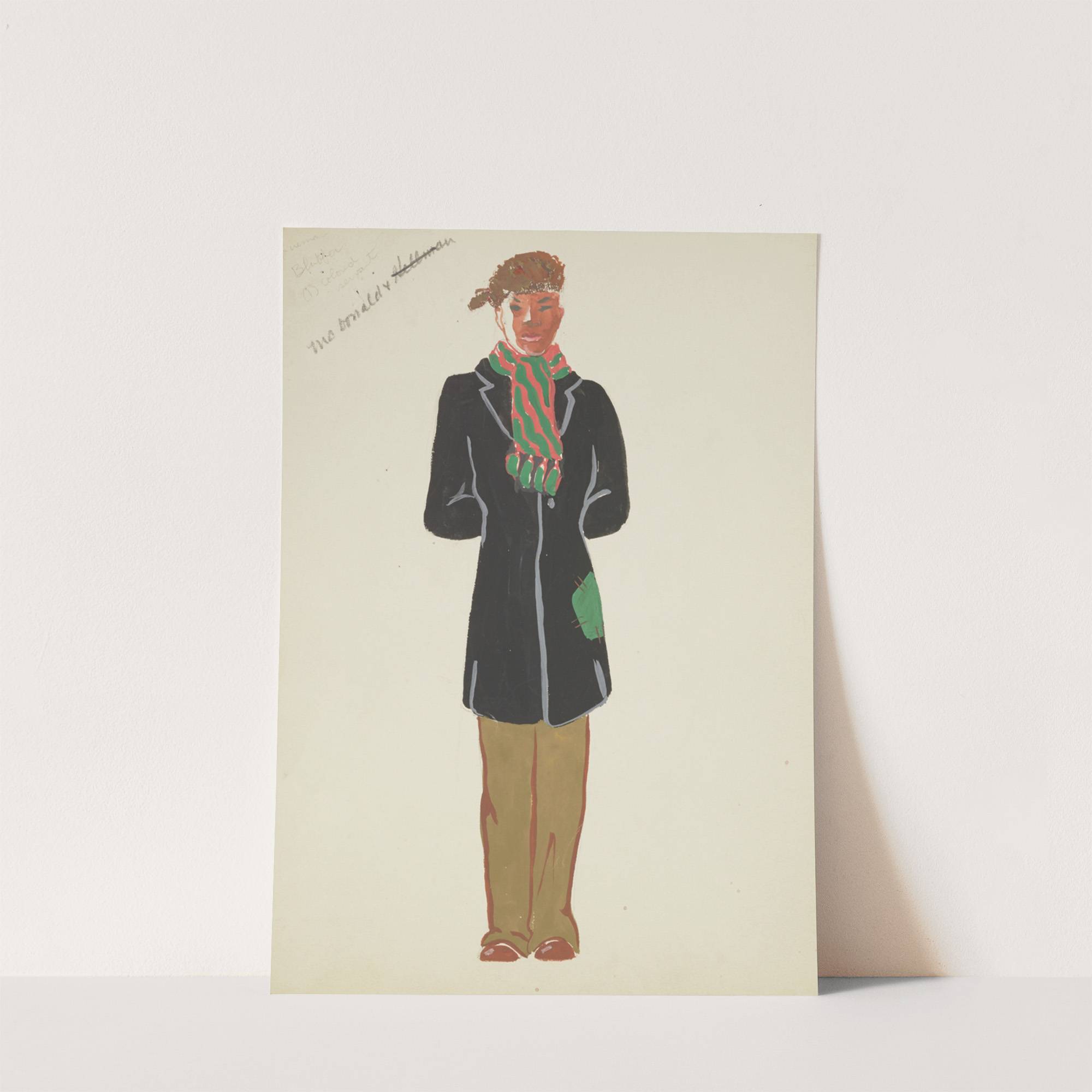 New York Fireman: Patched black coat, brown trousers, brown cap (1934-1943) by Lucie Gilligan - Wall Art Print