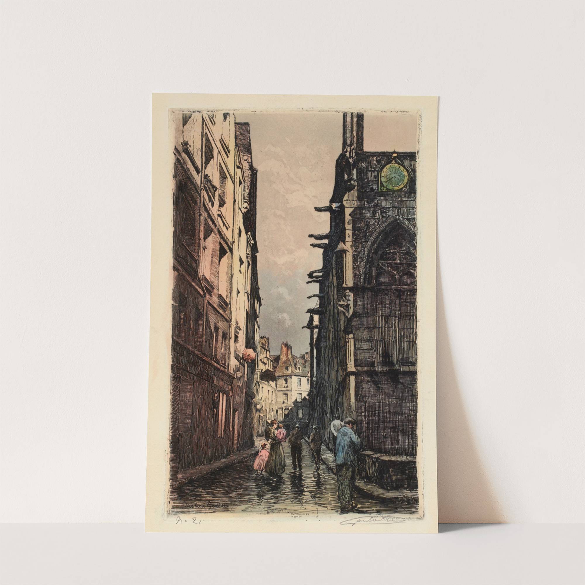 La rue Saint Séverin et une partie de l’église by Lucien Marcelin Gautier - Wall Art Print