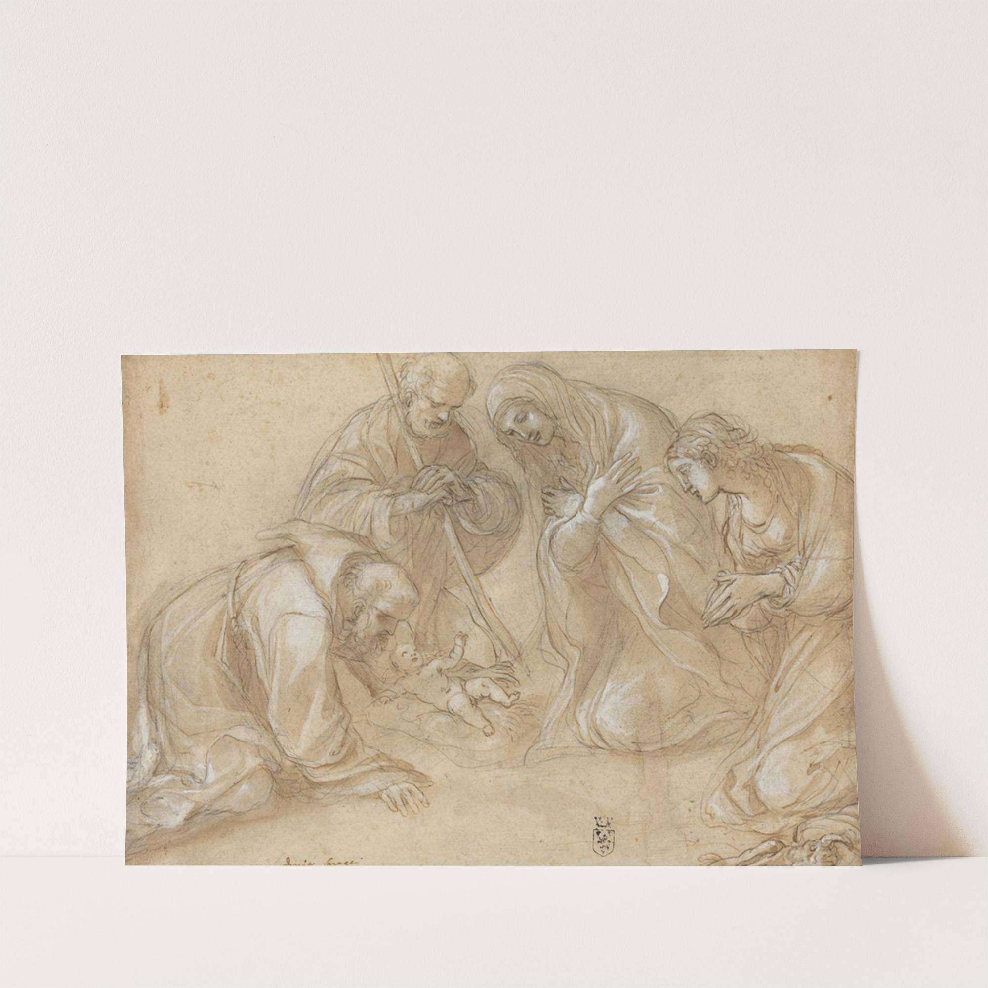 The Nativity with Saints Francis and Agnes by Ludovico Carracci - Wall Art Print