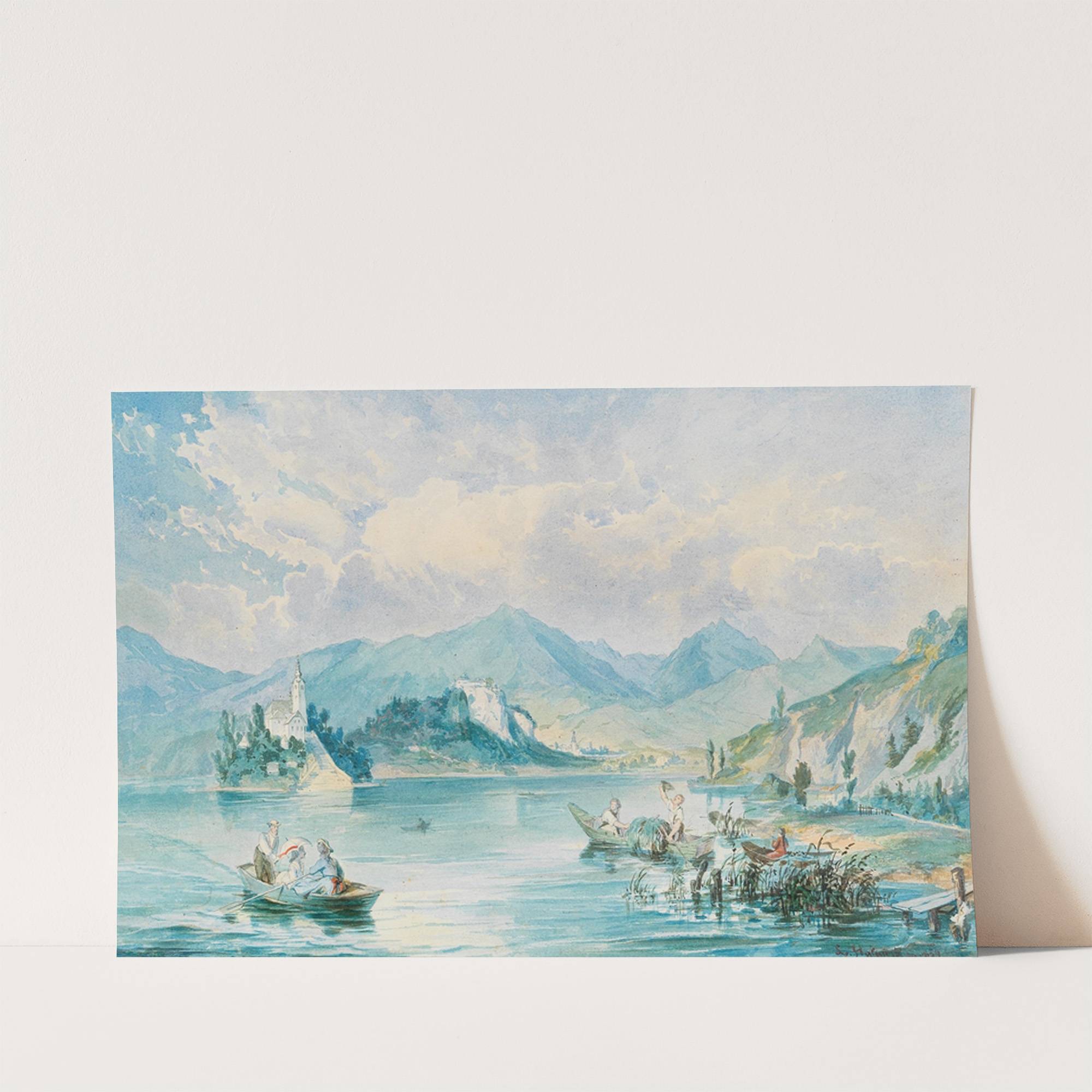 A view of Bled island in lake Bled in Slovenia by Ludwig Halauska - Wall Art Print