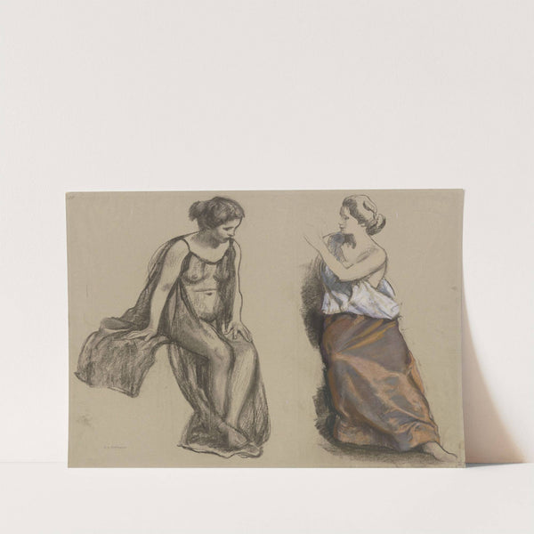 Studienblatt; Zwei Frauen, sitzend, in unterschiedlicher Bekleidung by Ludwig von Hofmann - Wall Art Print