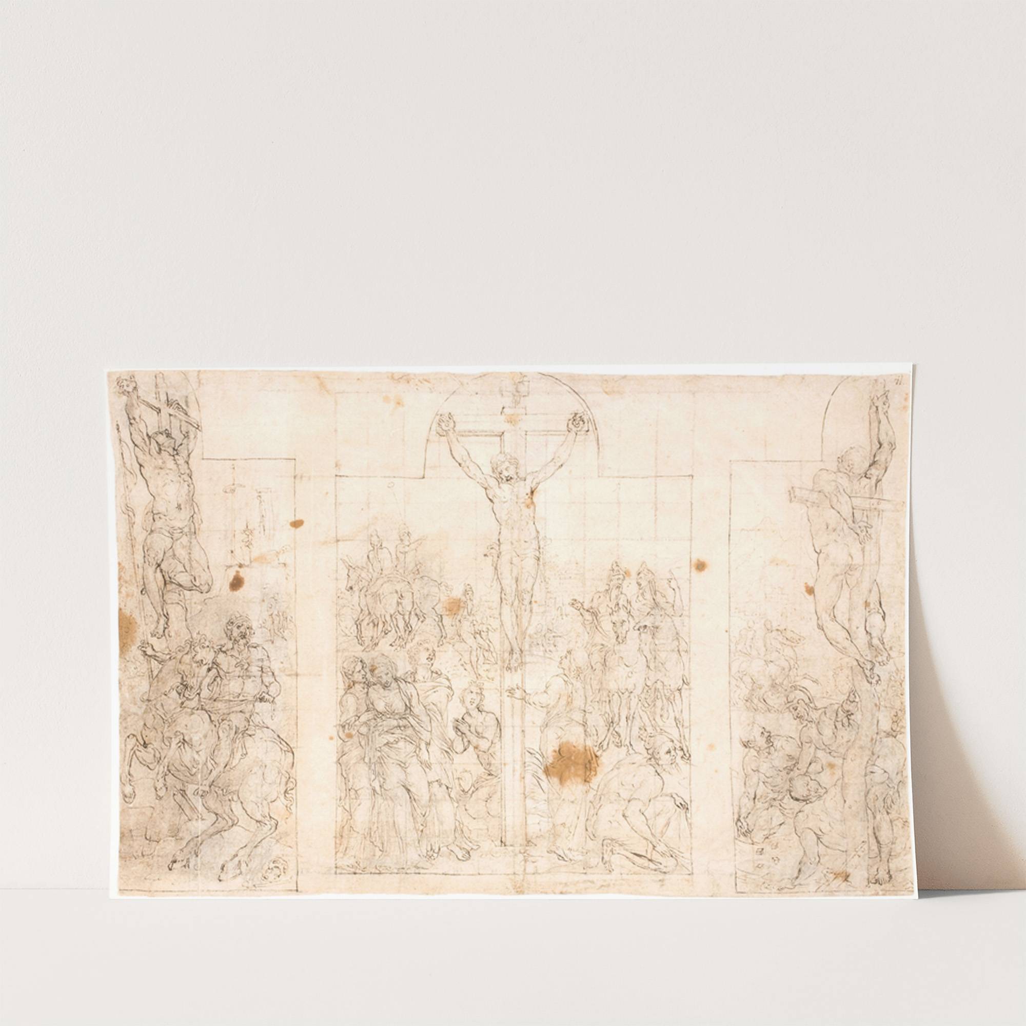 Forstudie til en trefløjet altertavle forestillende Korsfæstelsen by Maarten Van Heemskerck - Wall Art Print
