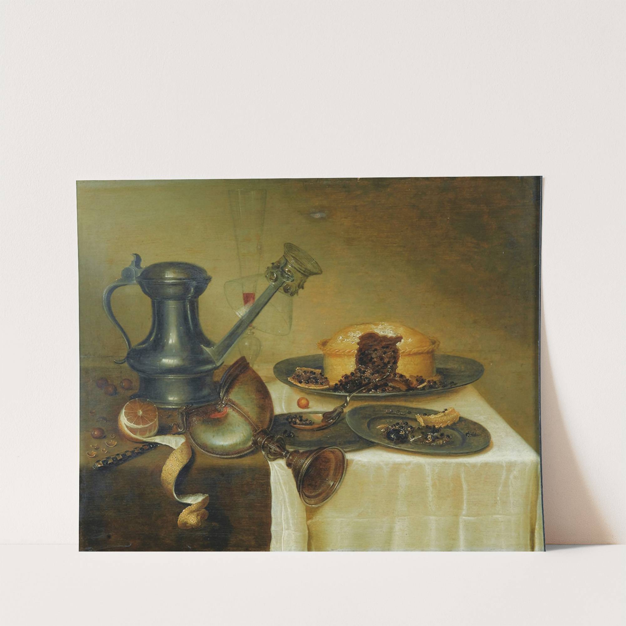 Still Life With A Pitcher, A Lemon, A Pie And A Nautilus Cup On A Wooden Ledge by Maerten Boelema De Stomme - Wall Art Print