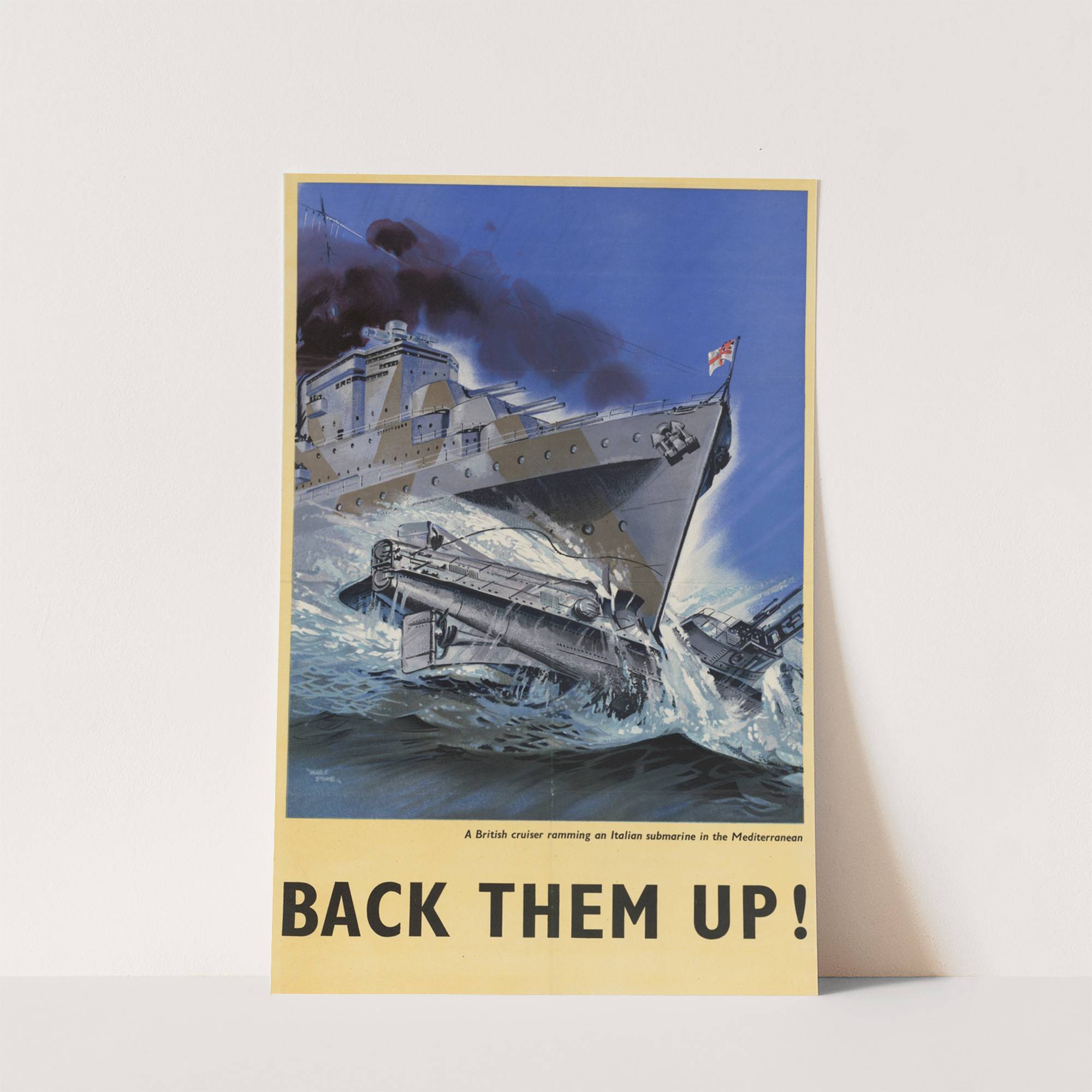 A British Cruiser Ramming an Italian Submarine in the Mediterranean – Back Them Up! by Marc Stone - Wall Art Print