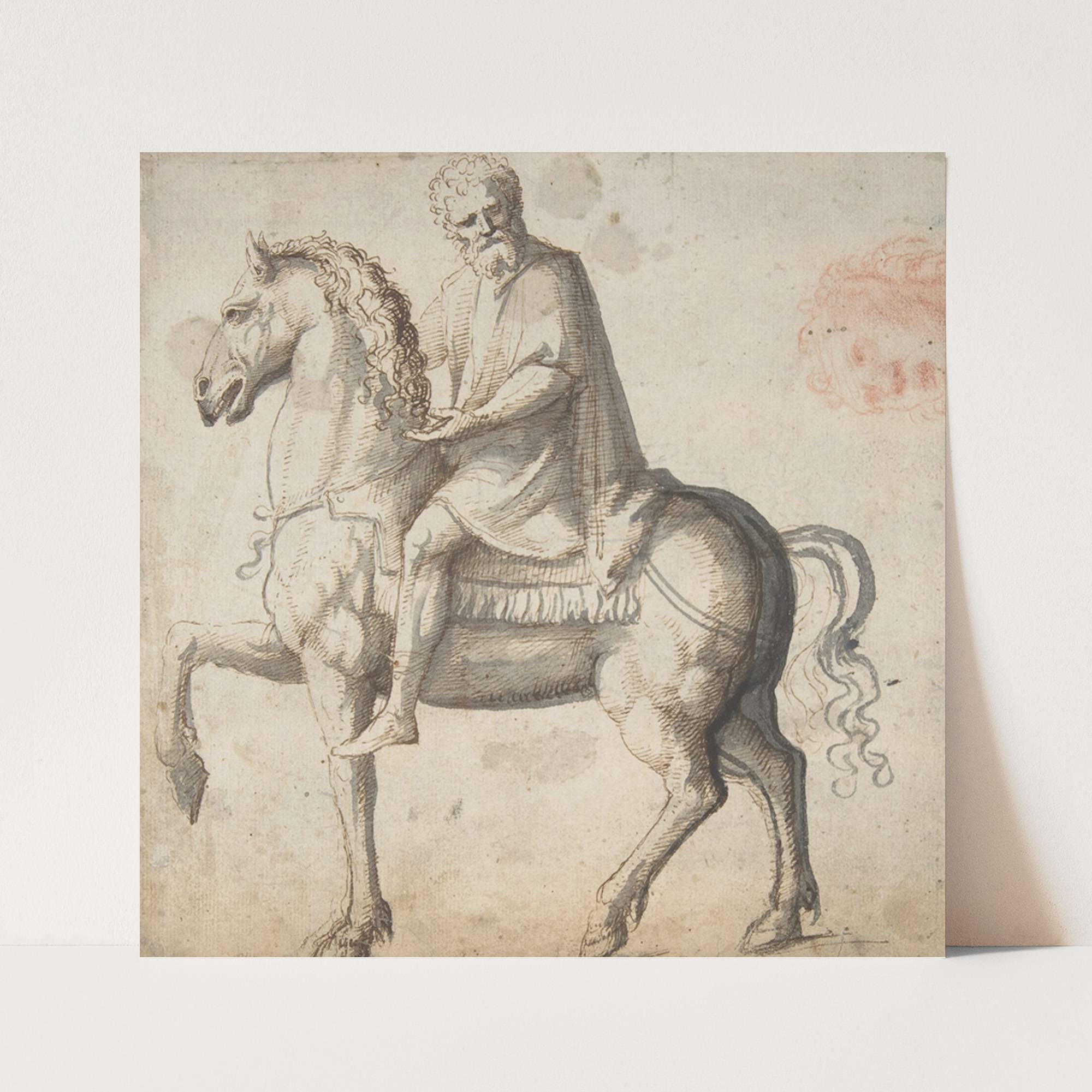 Man on Horseback, Study of a Man’s Head by Marcello Fogolino - Wall Art Print