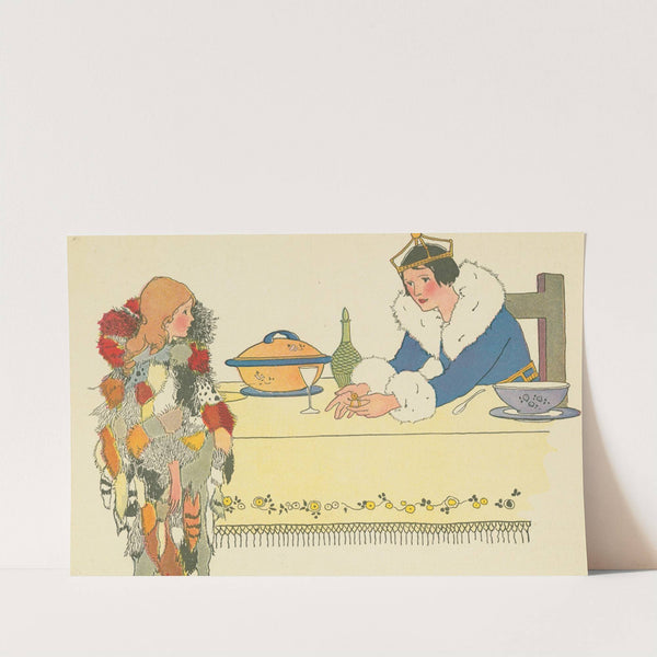 The king questions Furball about the golden spinning wheel found in his bowl of soup by Margaret Evans Price - Wall Art Print