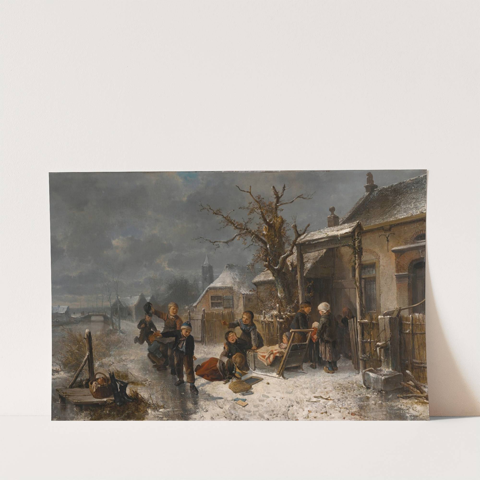 Children Playing By A Canal In Winter by Mari ten Kate - Wall Art Print