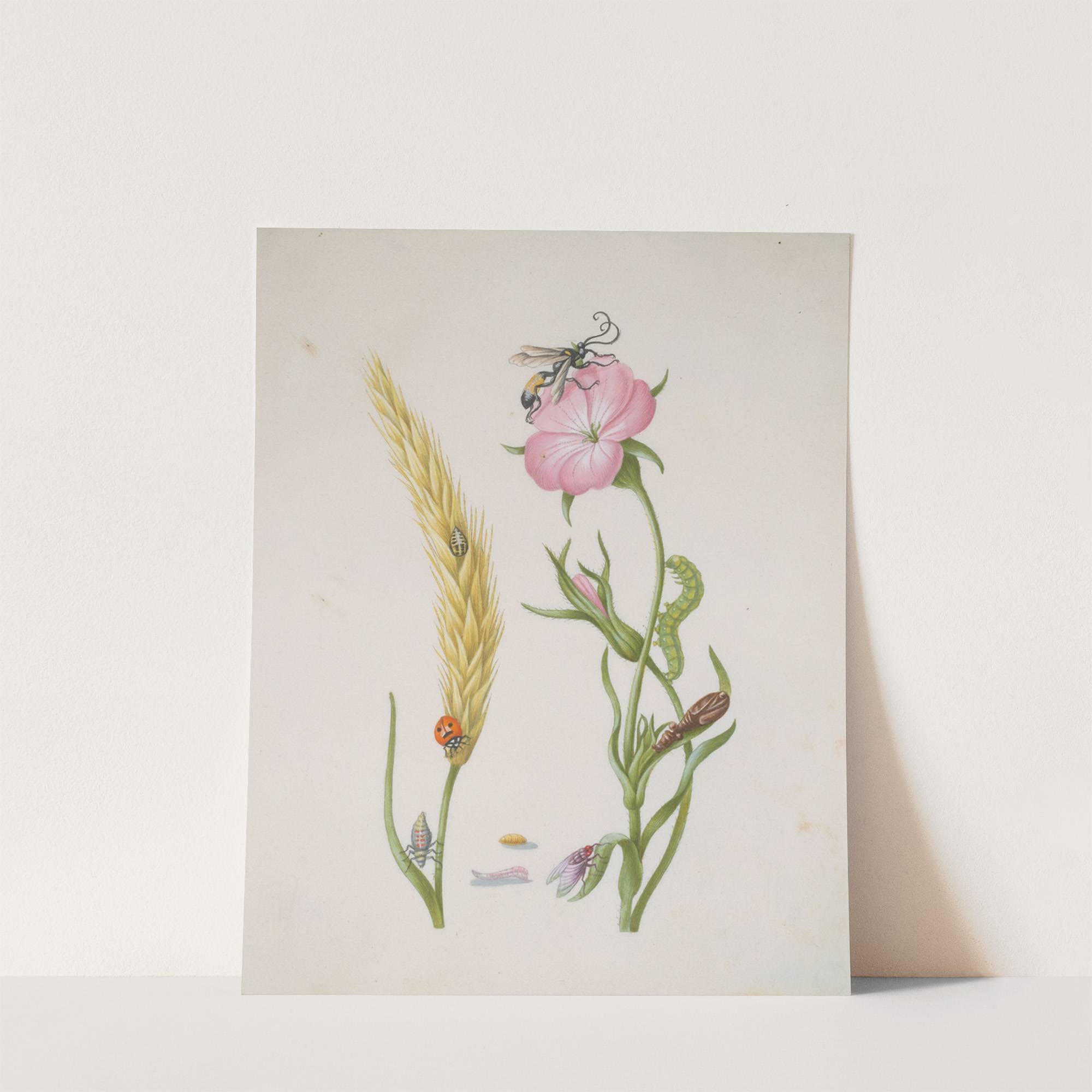 Cereal Ear and Corn Cockle with Metamorphoses of the Five-Spot Ladybird and Blowfly by Maria Sibylla Merian - Wall Art Print