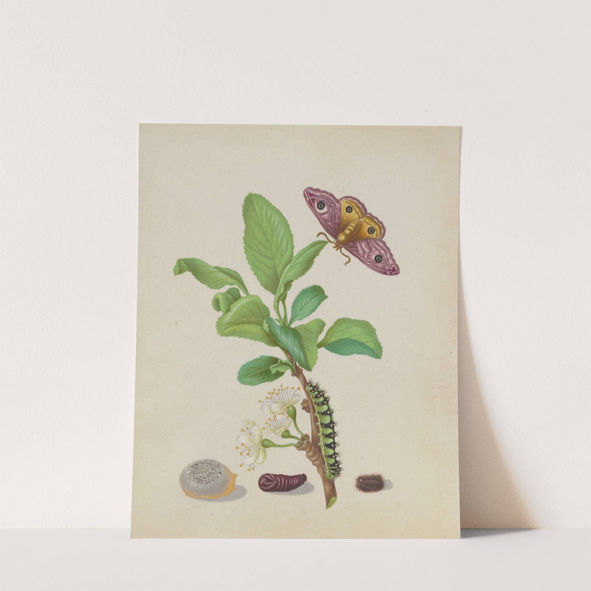 Metamorphosis of a Small Emperor Moth on a Damson Plum, plate 13 of the Caterpillar Book (1679) by Maria Sibylla Merian - Wall Art Print