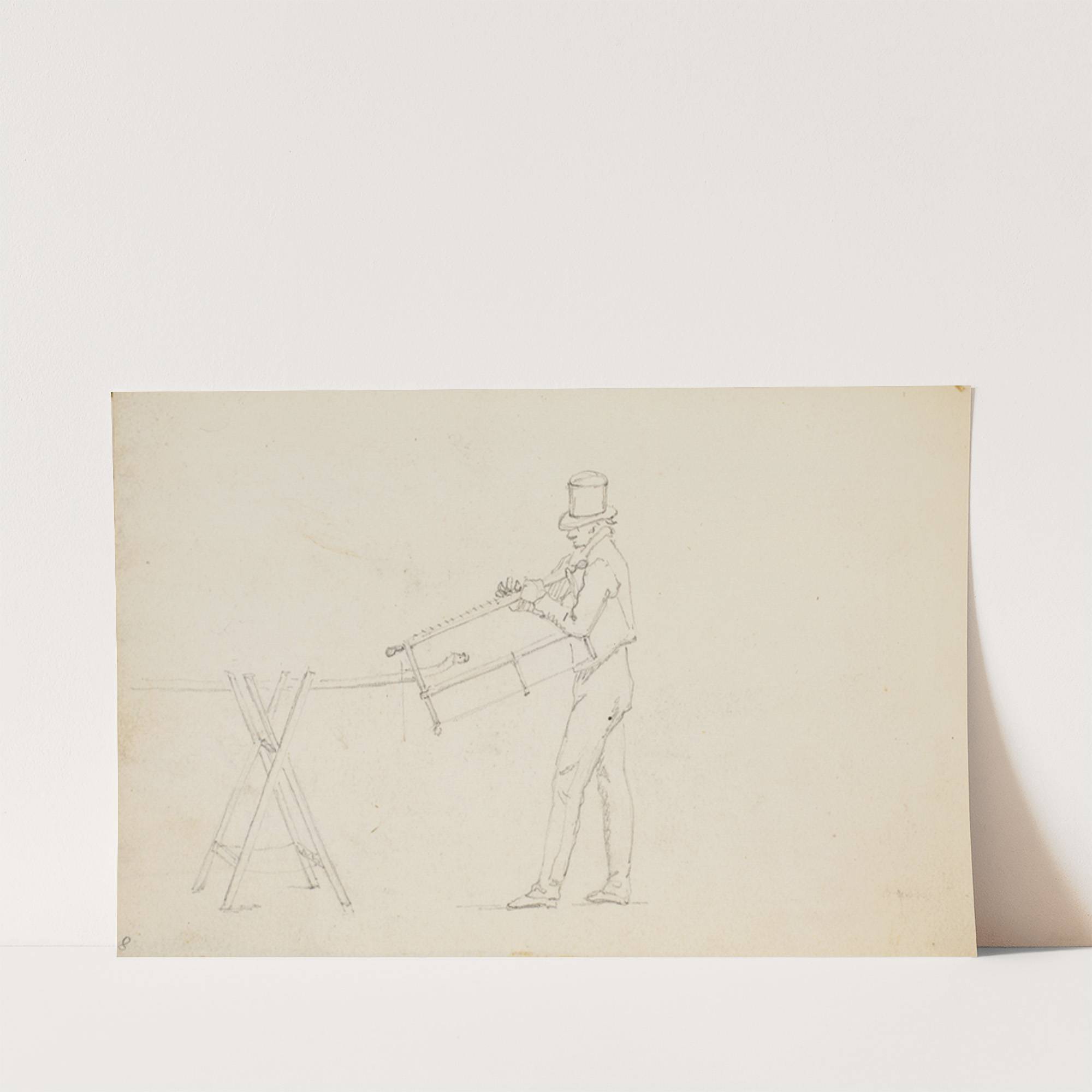 Mand ved en savbuk, holdende en sav by Martinus Rørbye - Wall Art Print