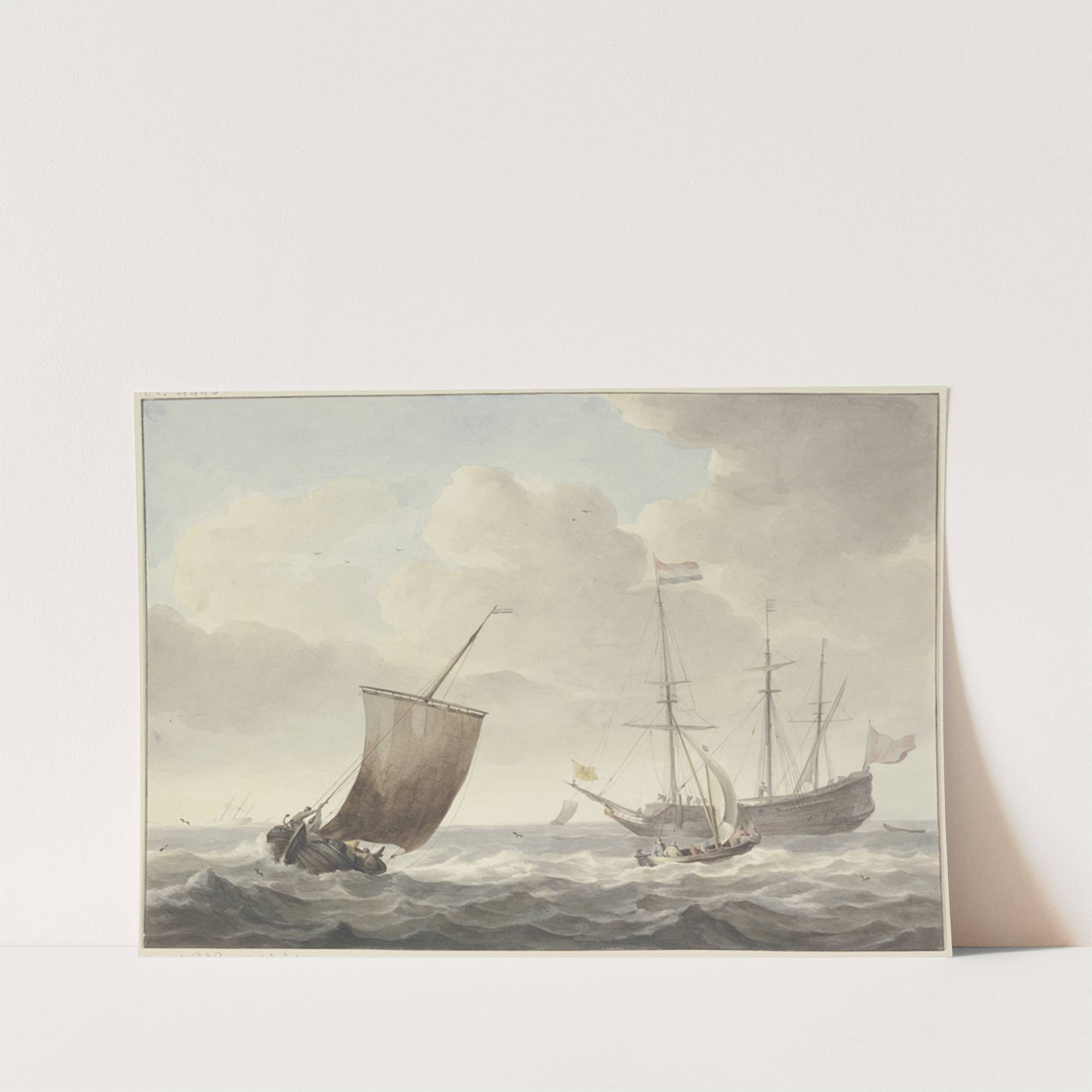 Bewegte See mit Schiffen, gelbe Flagge mit goldenem Löwen by Martinus Schouman - Wall Art Print