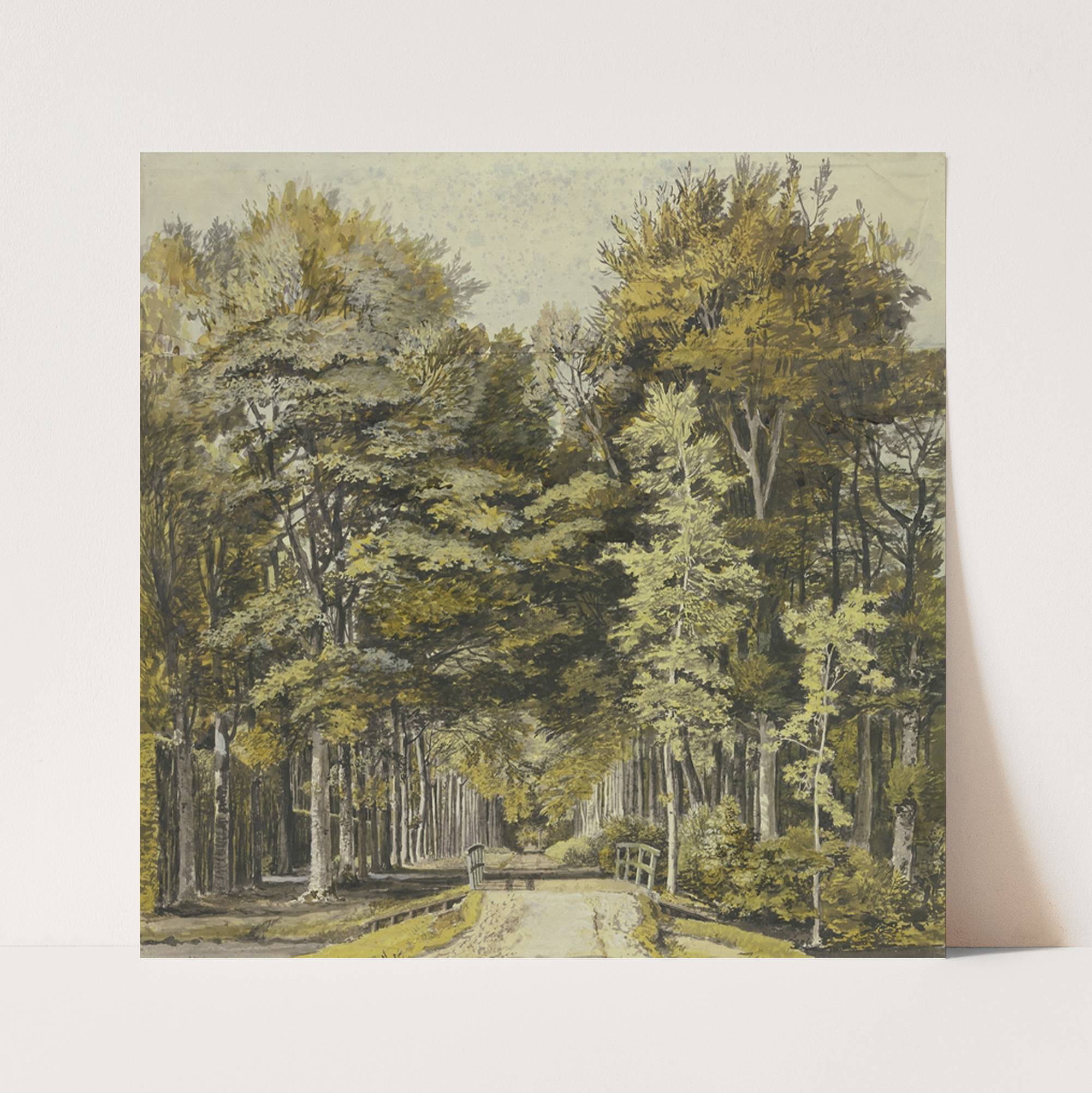 Weg durch einen Buchenwald, vorne eine hölzerne Brücke by Martinus van der Jagt - Wall Art Print