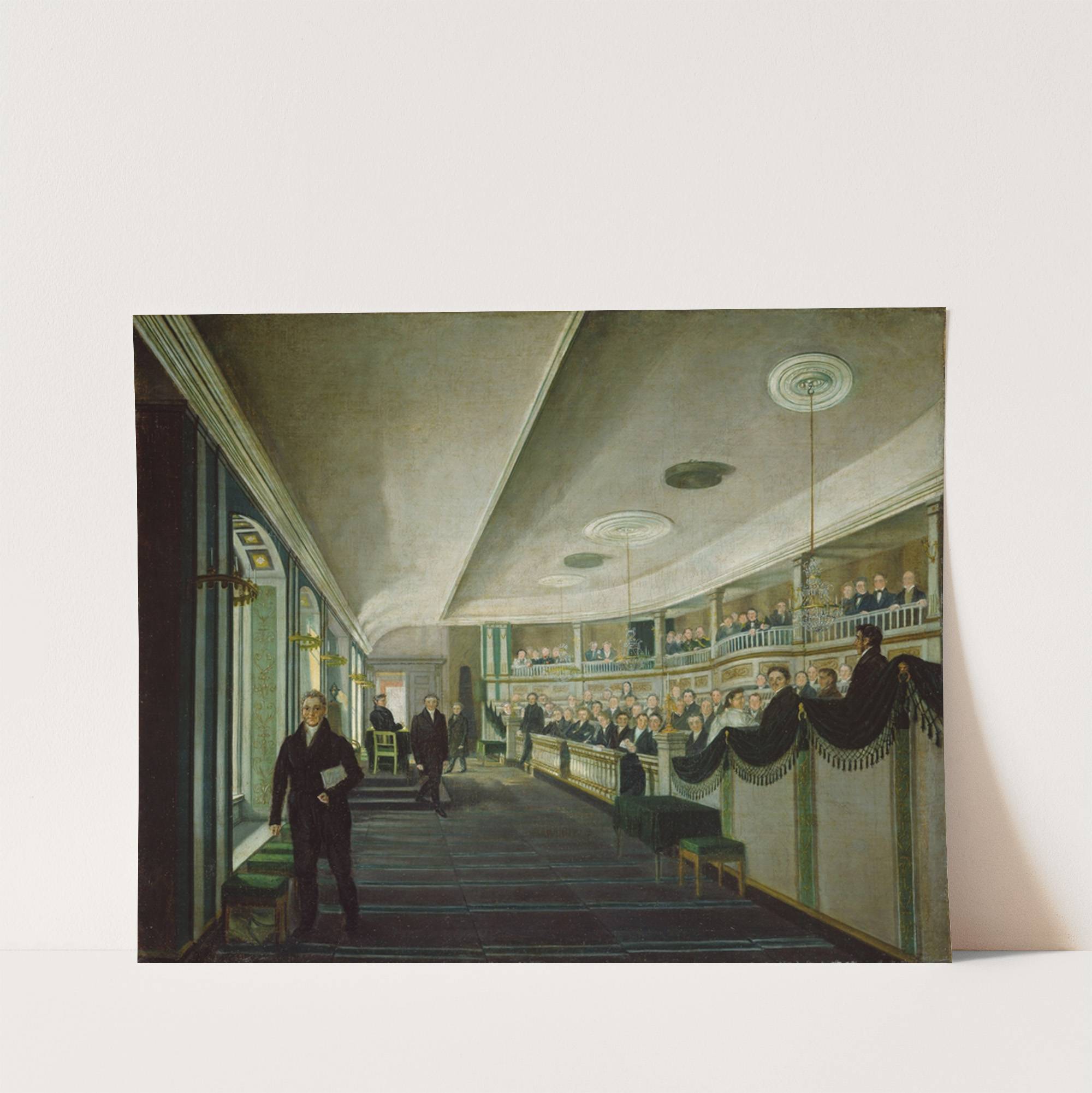 Fra et møte i den gamle Stortingssalen i Christiania Katedralskole by Matthias Stoltenberg - Wall Art Print