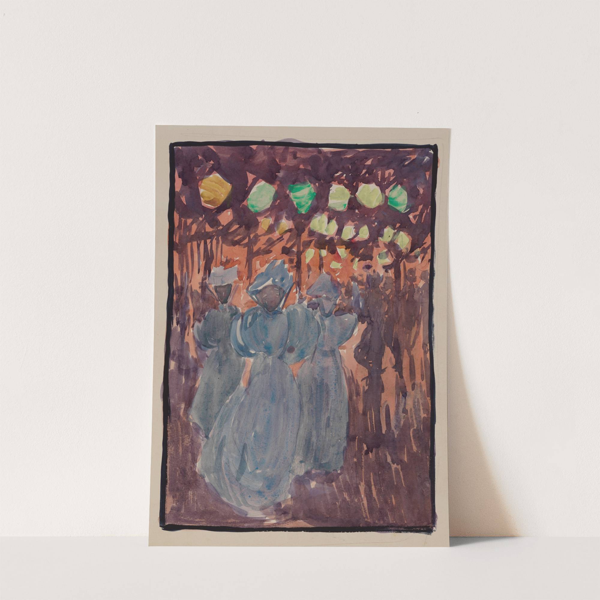 Night scene with three women in blue (1895–1897) by Maurice Prendergast - Wall Art Print