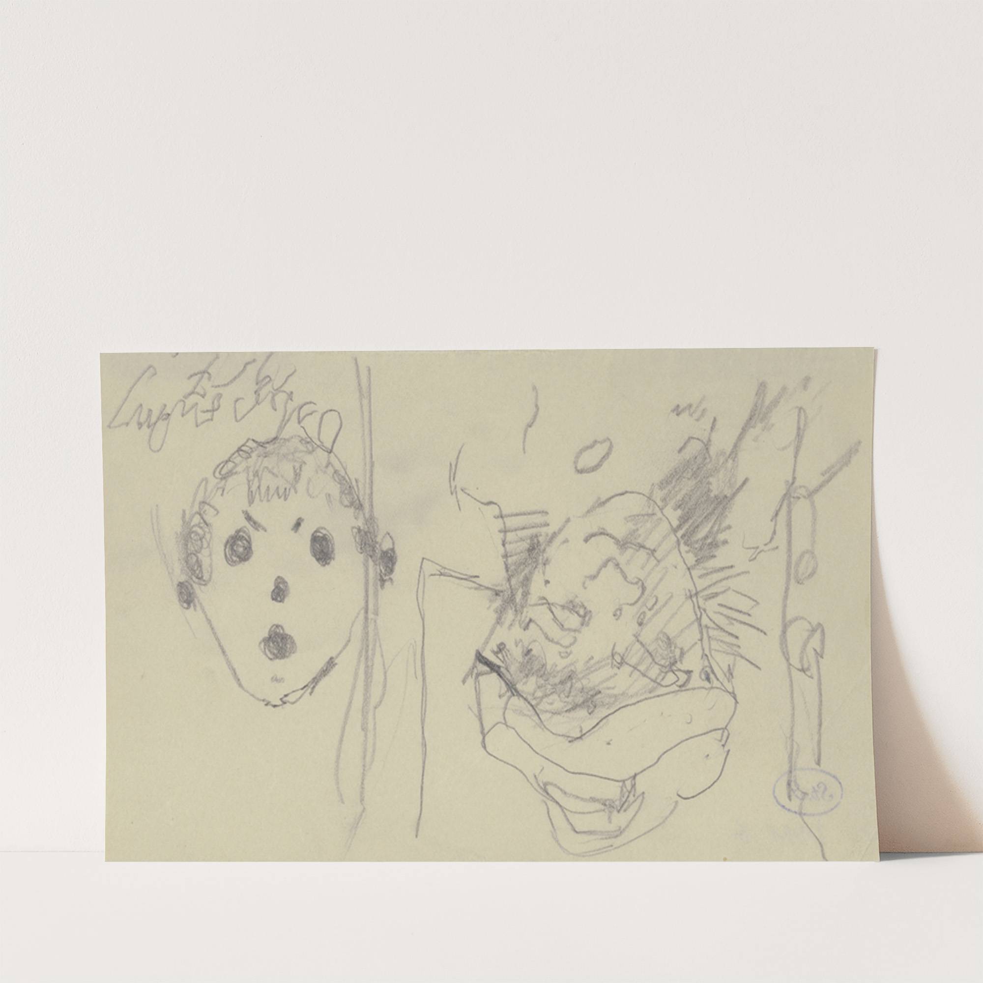 Kopf einer Frau mit Hut sowie eine – bei Drehung des Papiers um 180 Grad gezeichnete – schematische Fratze by Max Beckmann  - Wall Art Print