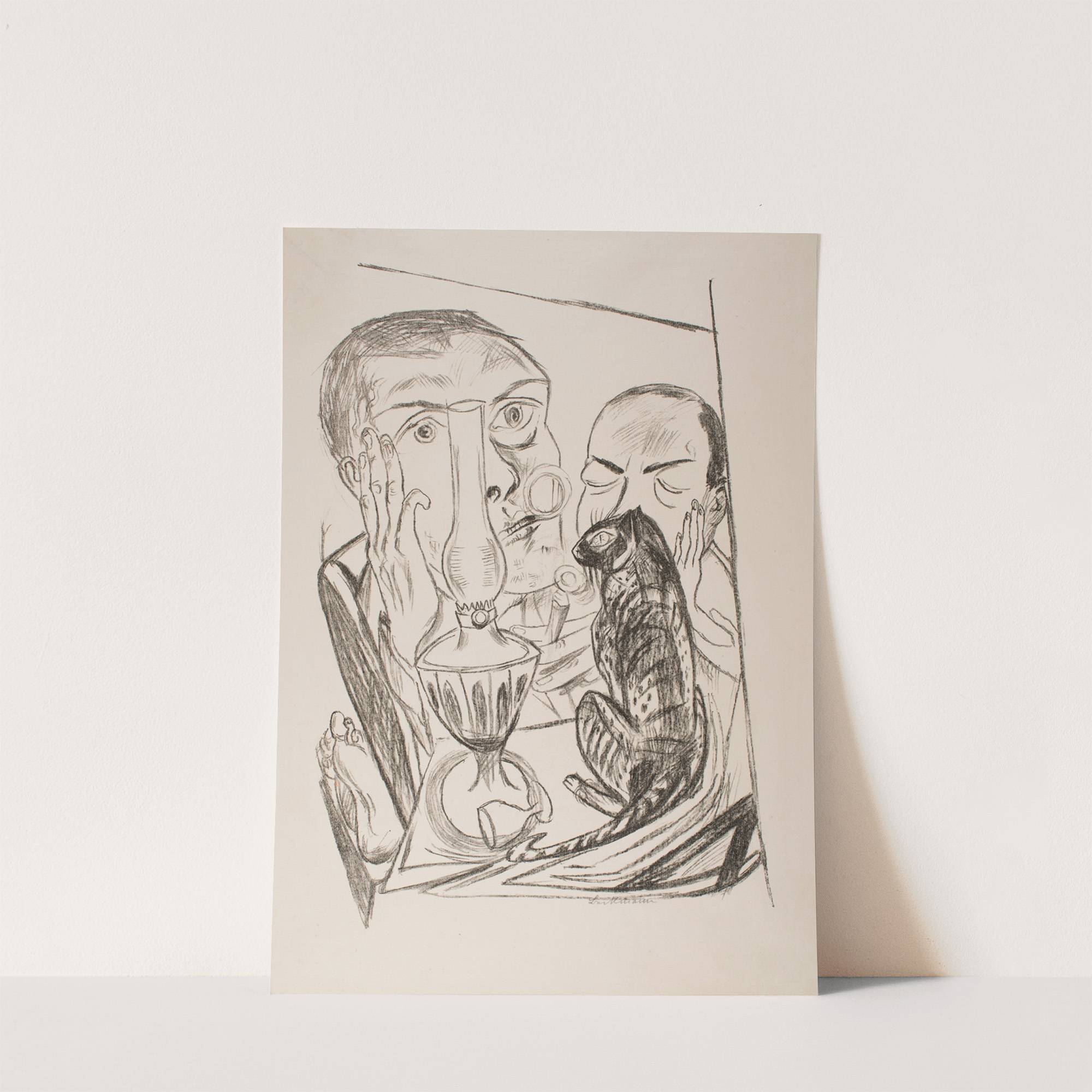 Self-Portrait with Cat and Lamp (1920) by Max Beckmann - Wall Art Print