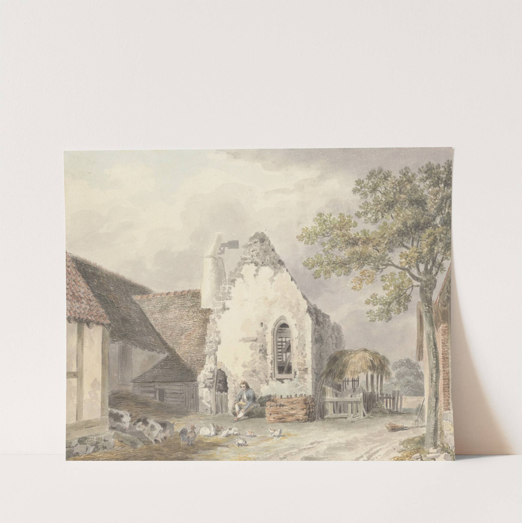 A Youth in a Farmyard with Pigs and Poultry by Michael Angelo Rooker - Wall Art Print