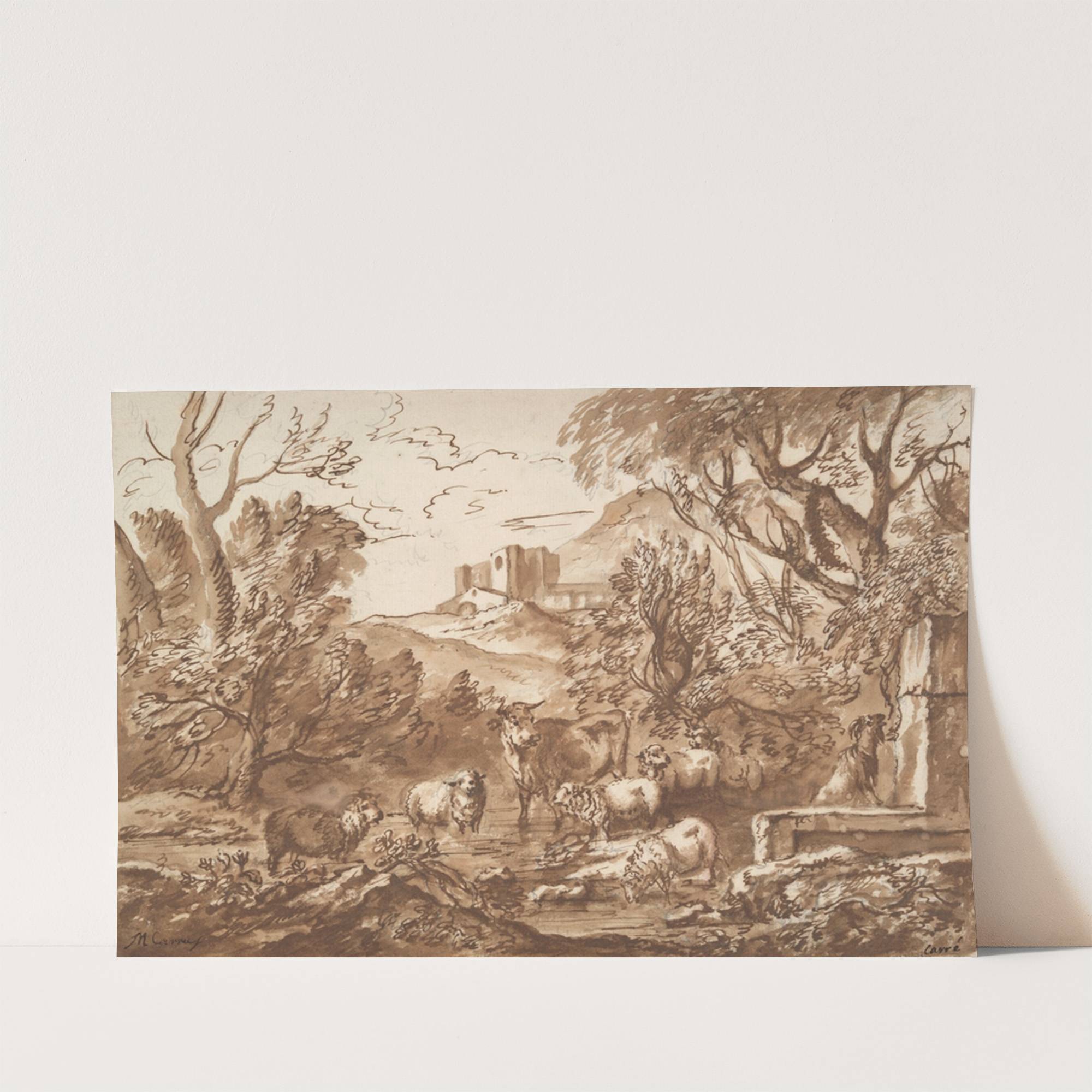 Cattle in a watering place near a fountain late by Michiel Carree - Wall Art Print