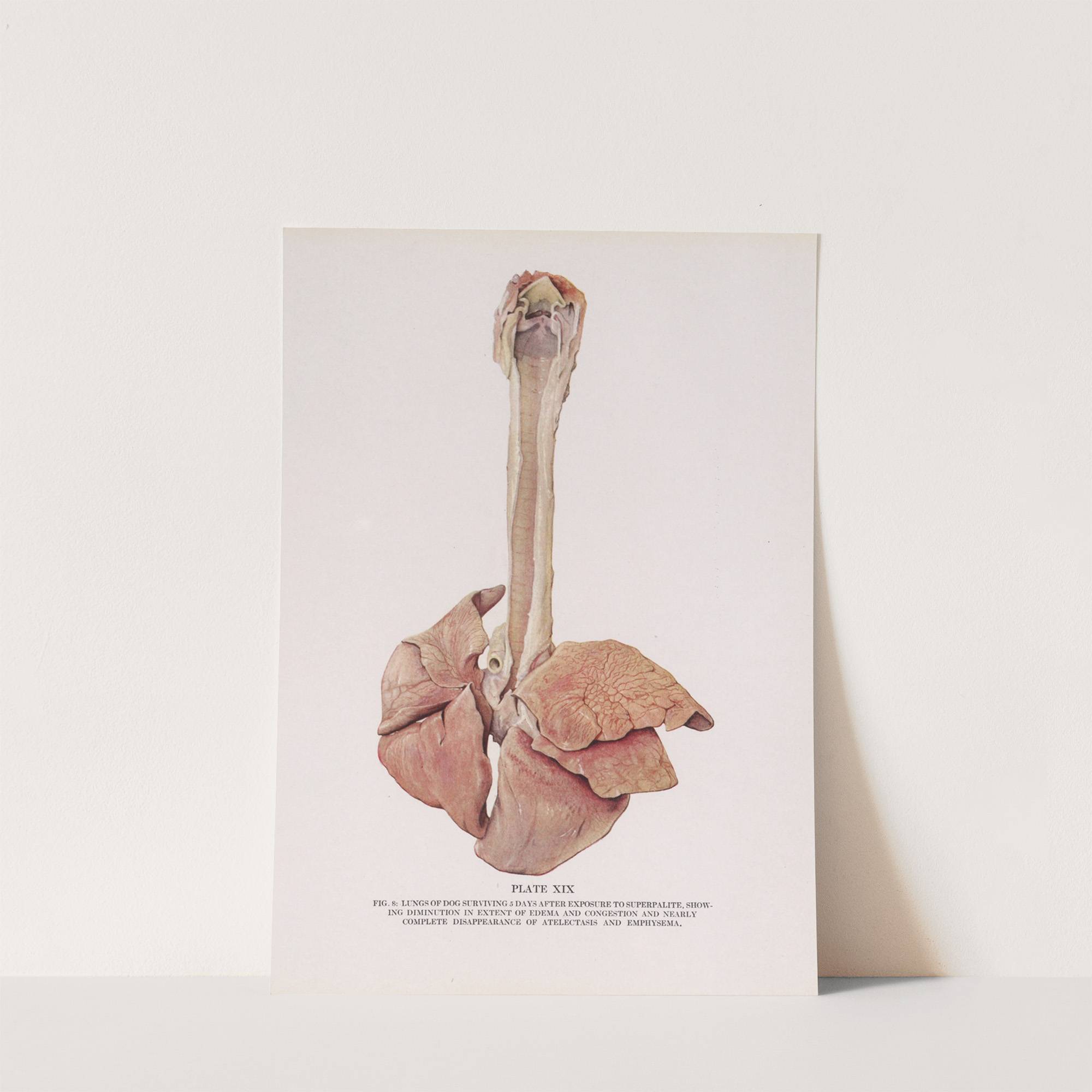 Plate XIX (Fig. 8): Lungs of dog surviving 5 days after exposure to superpalite, showing diminution in extent of edema and congestion and nearly complete disappearance of atelectasis and emphysema. by Milton C. Winternitz - Wall Art Print