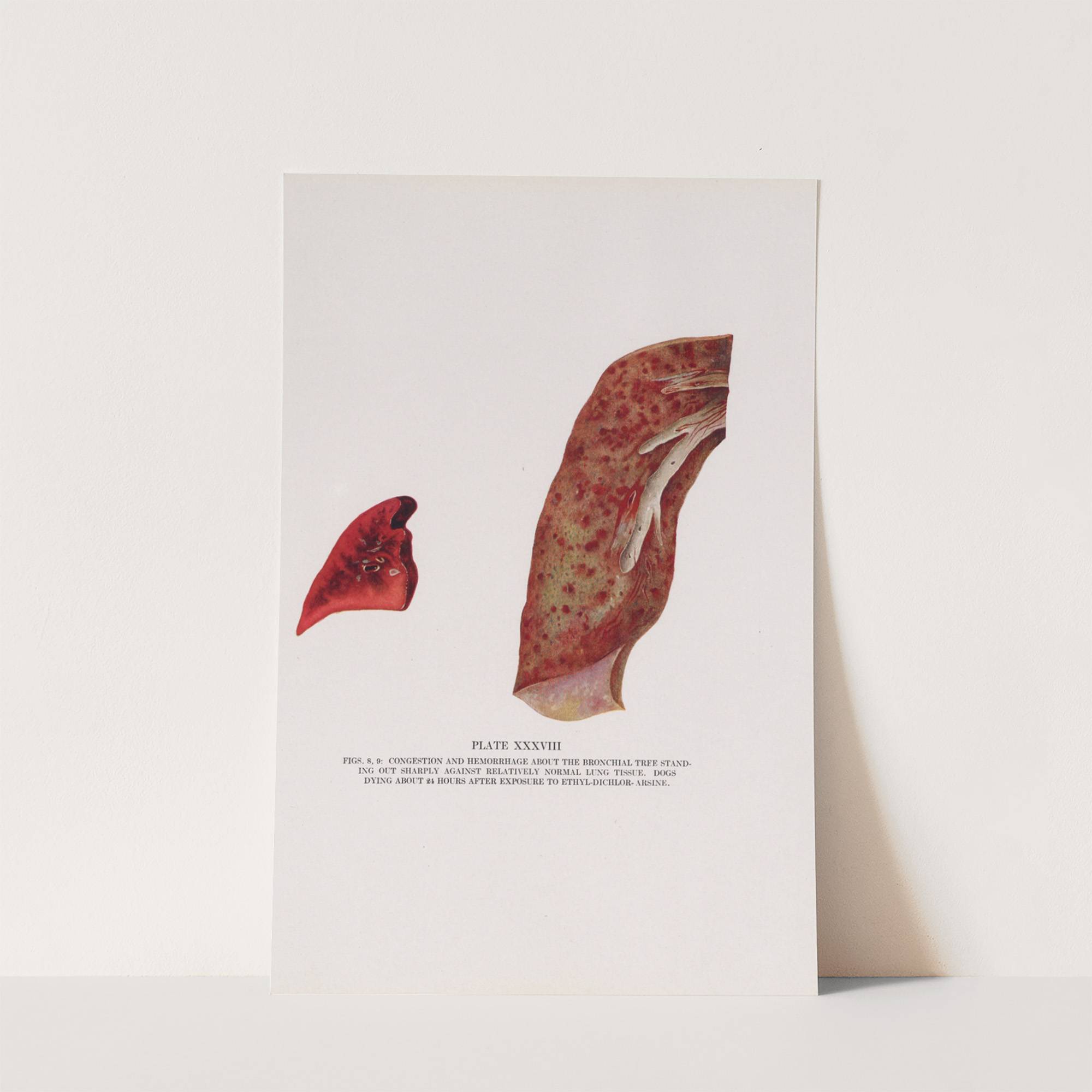 Plate XXXVIII (Figs. 8, 9): Congestion and hemorrhage about the bronchial tree standing out sharply against relatively normal lung tissue. by Milton C. Winternitz - Wall Art Print