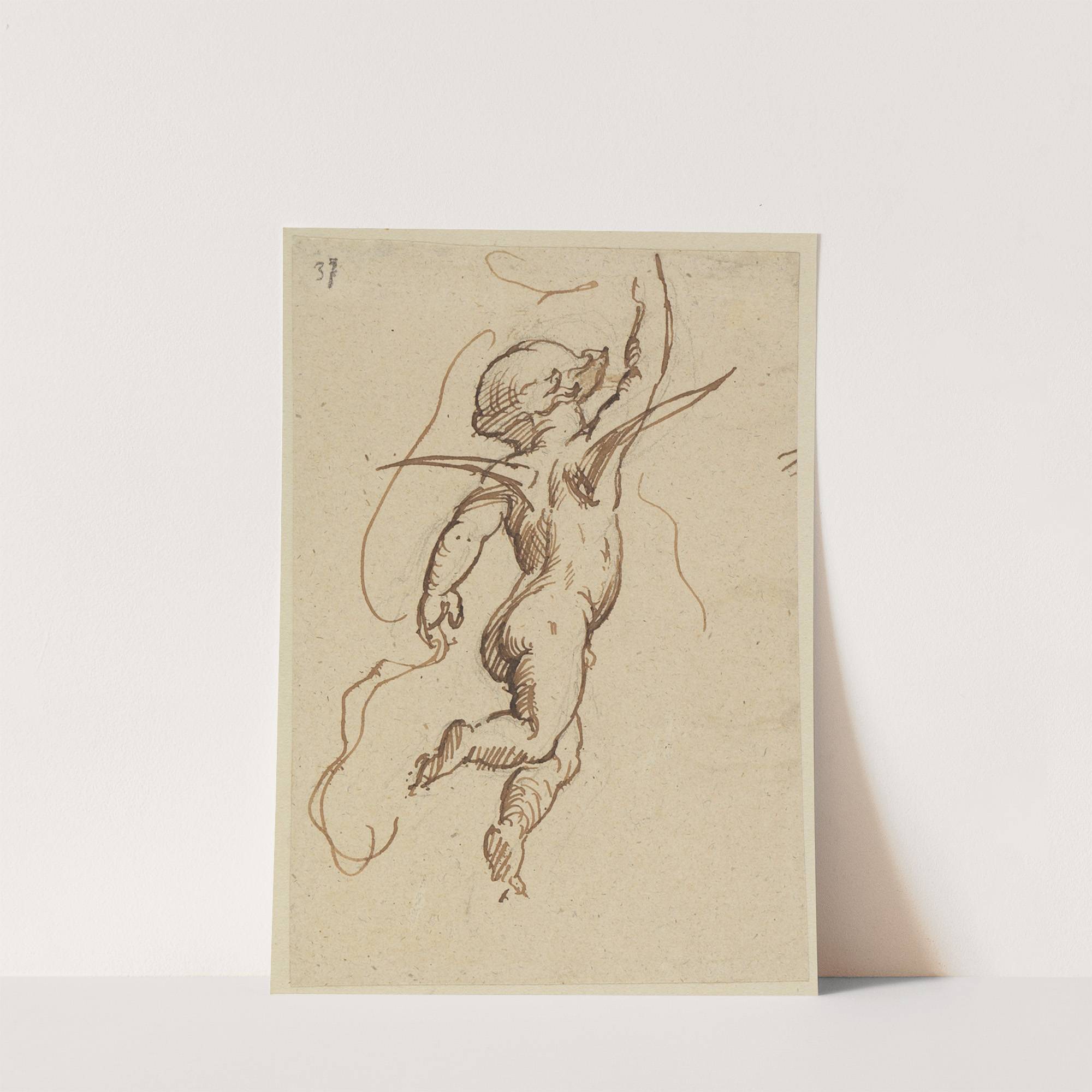 Putto, schräg vom Rücken gesehen, mit erhobenem rechten Arm, den Kopf nach links gewendet by Moritz von Schwind - Wall Art Print