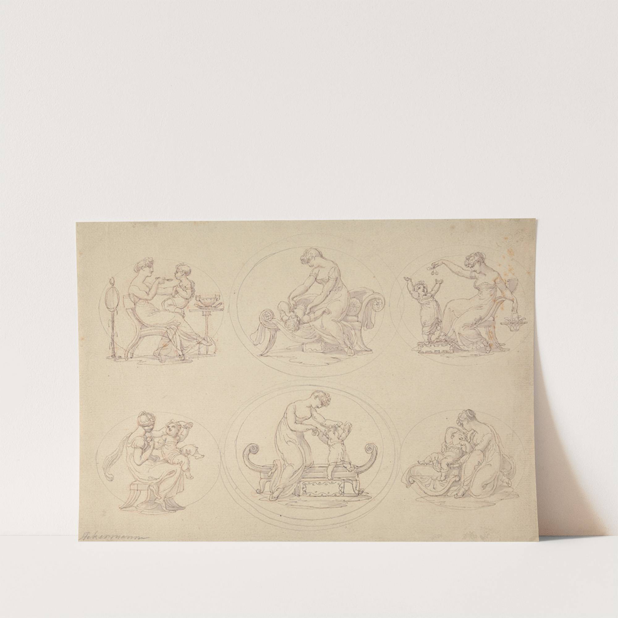 Six Studies of Mother and Daughter Playing by Edward Francis Burney - Wall Art Print