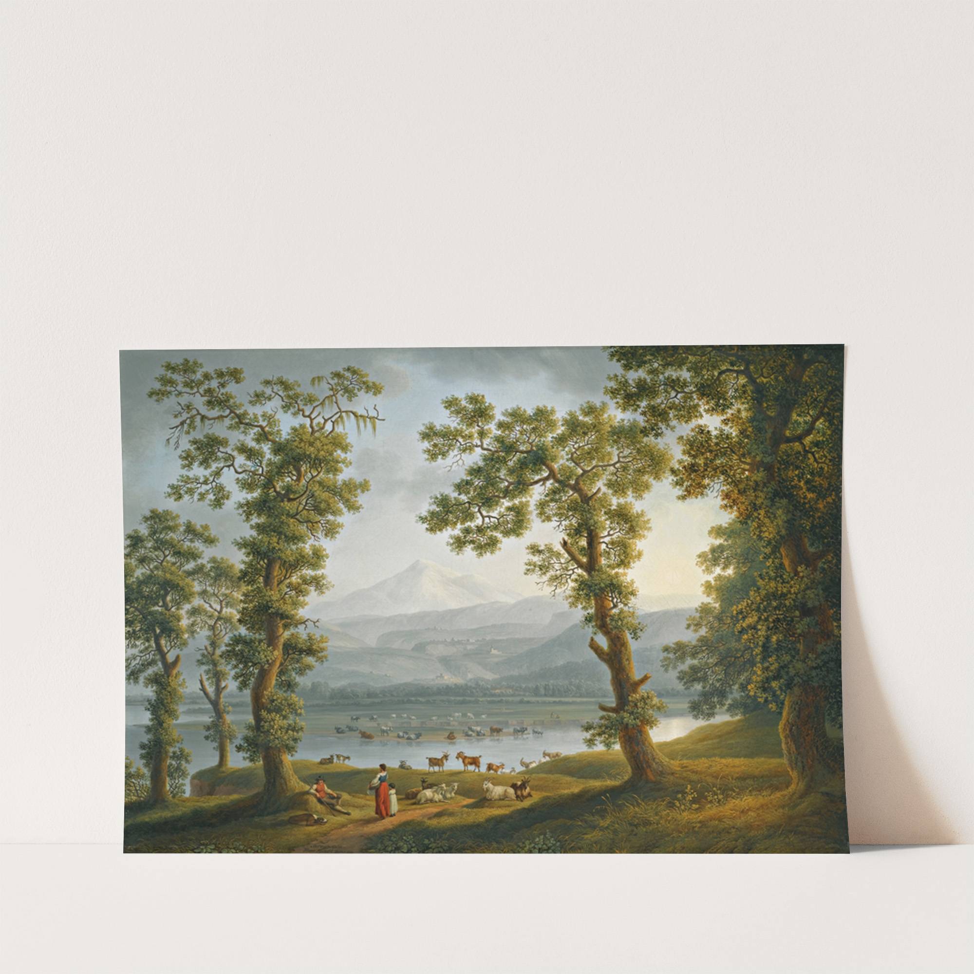 A View Across The Volturno River Towards Alife, Piedimonte Matese, And The Matese Mountains Rising Beyond by Jakob Philipp Hackert - Wall Art Print