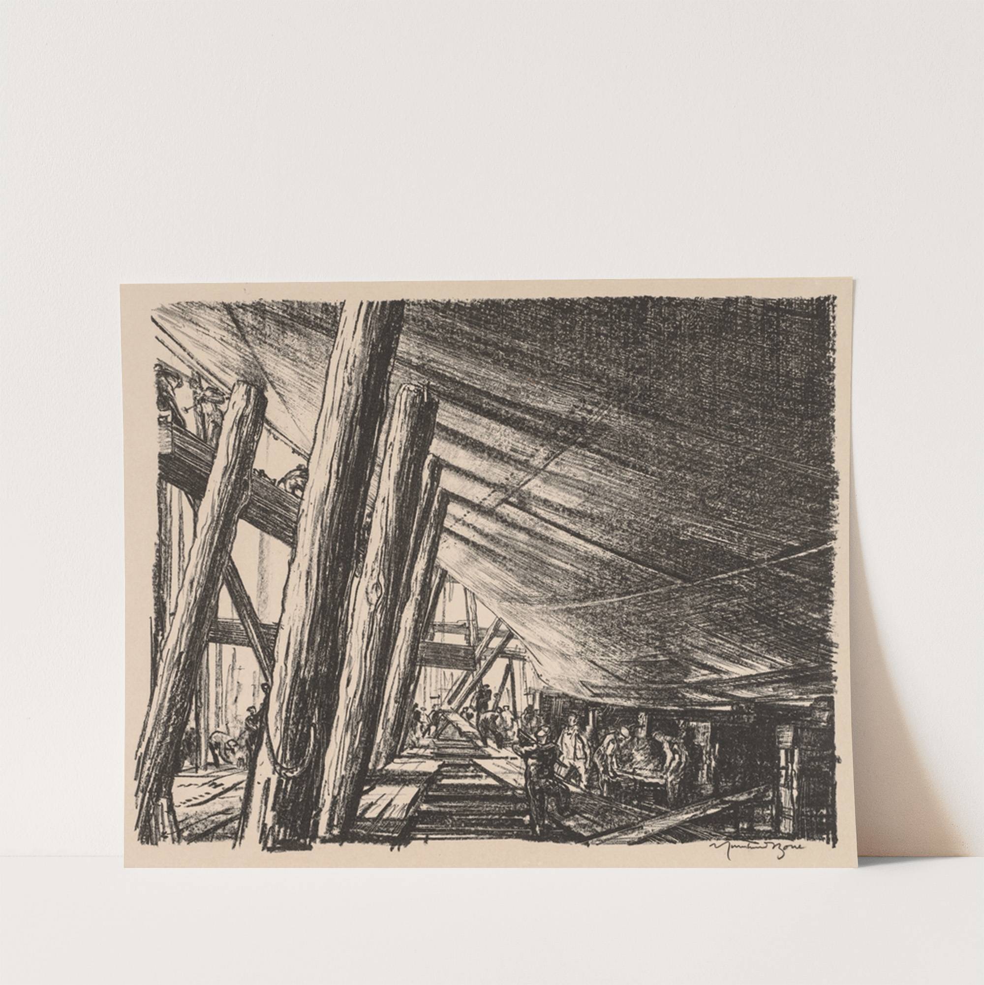 On the Clyde, 1917-1918; Building a Cross Channel Train Ferry (1917–1918) by Muirhead Bone - Wall Art Print