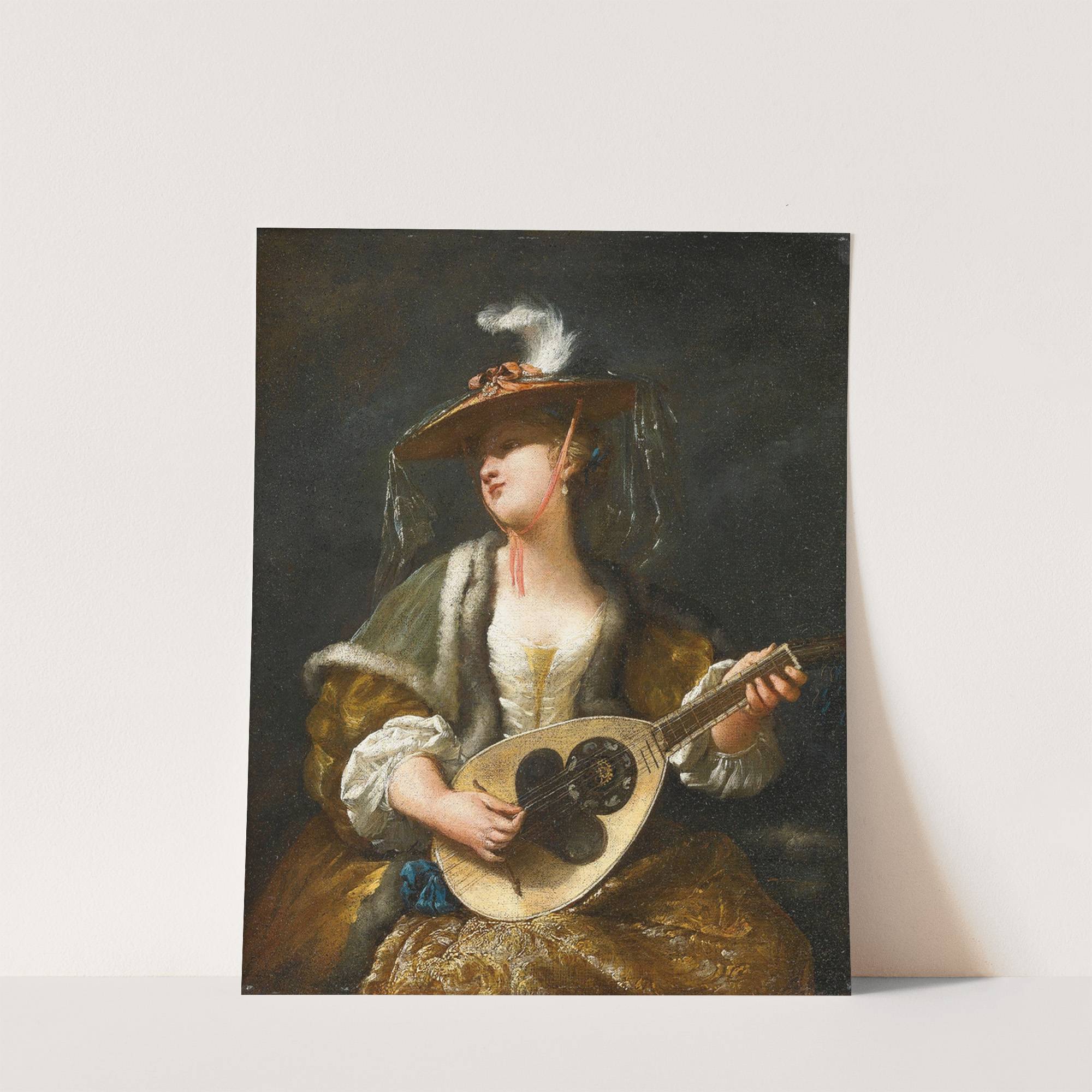 A Lady Playing A Mandolin by Jean Barbault - Wall Art Print