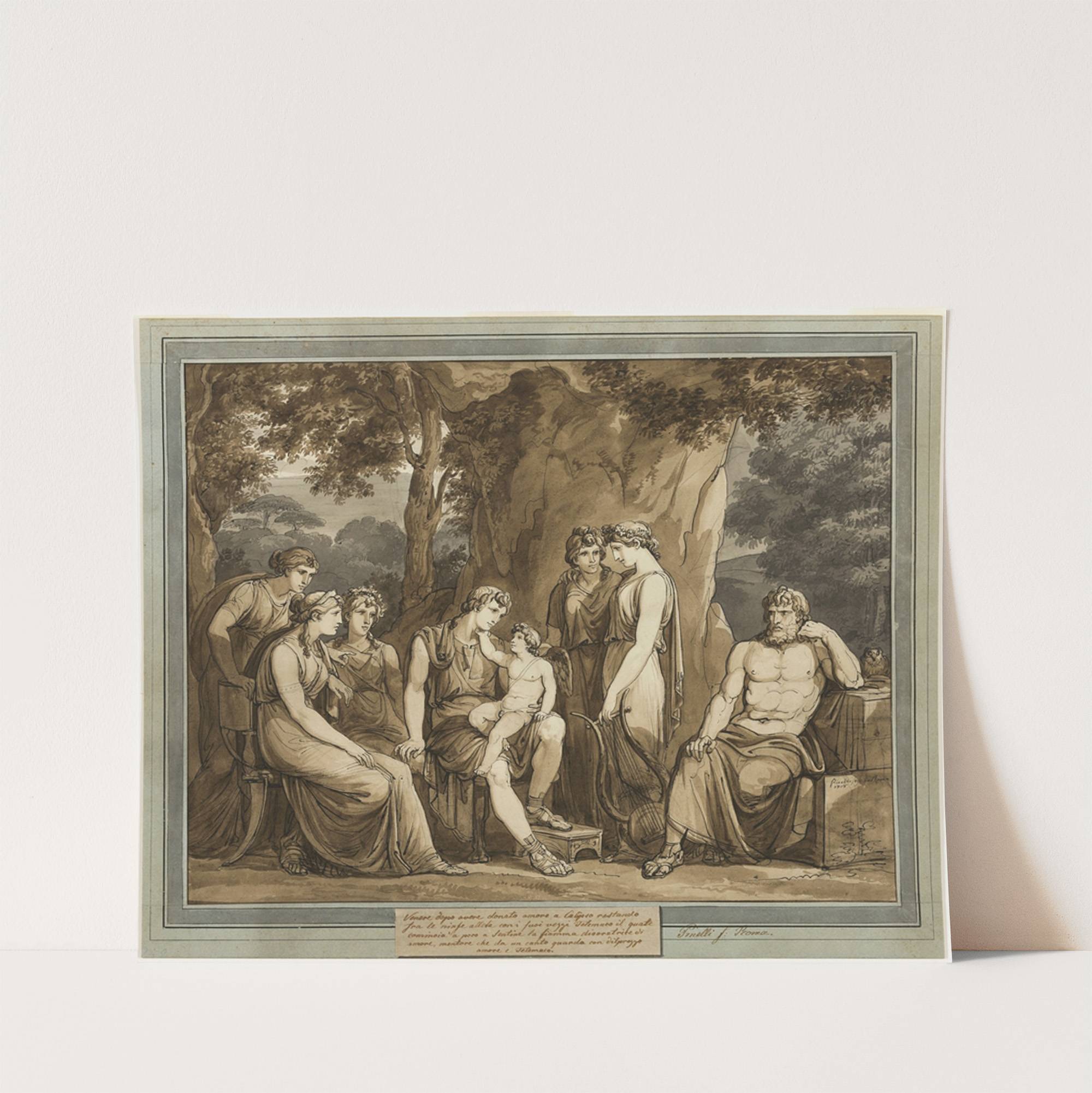 Calypso Watches Telemachus with Cupid on His Knee, While Mentor Watches in Anger, from The Adventures of Telemachus, Book 7 (1808) by Bartolomeo Pinelli - Wall Art Print