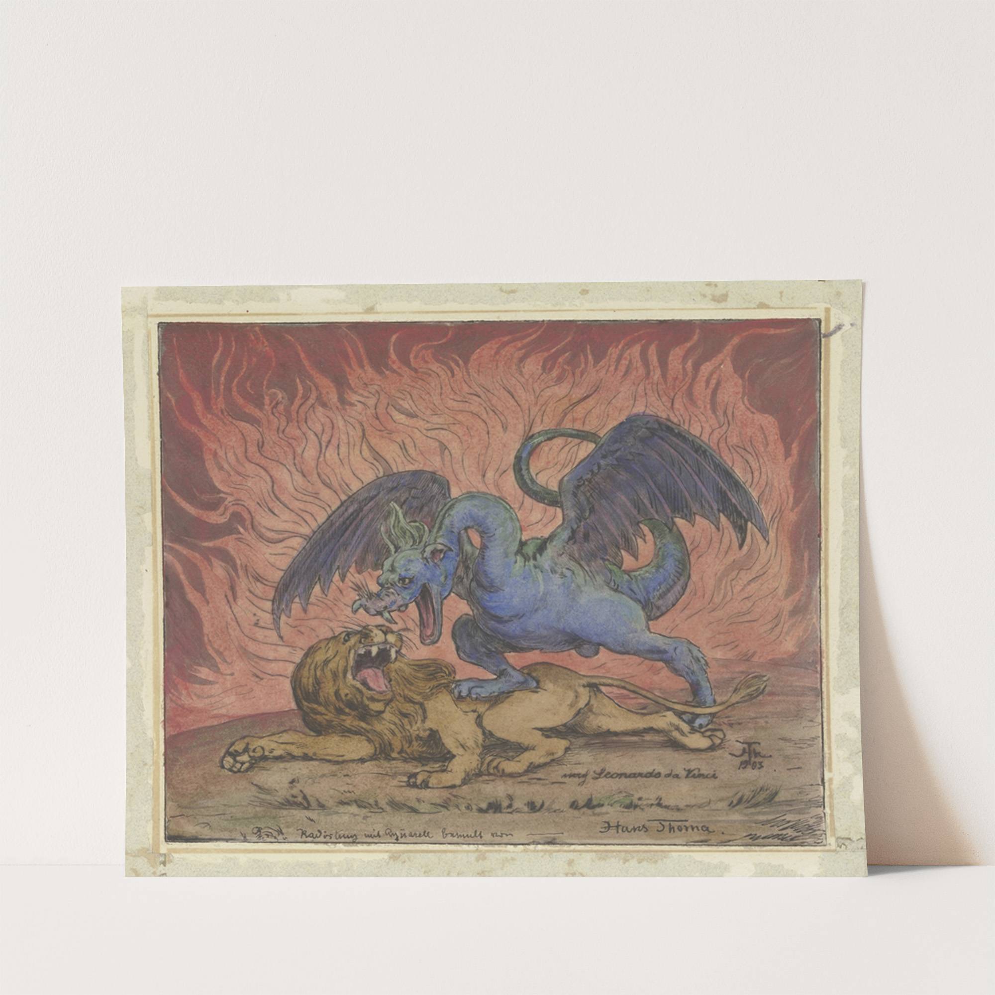 Dragon and Lion by Hans Thoma - Wall Art Print