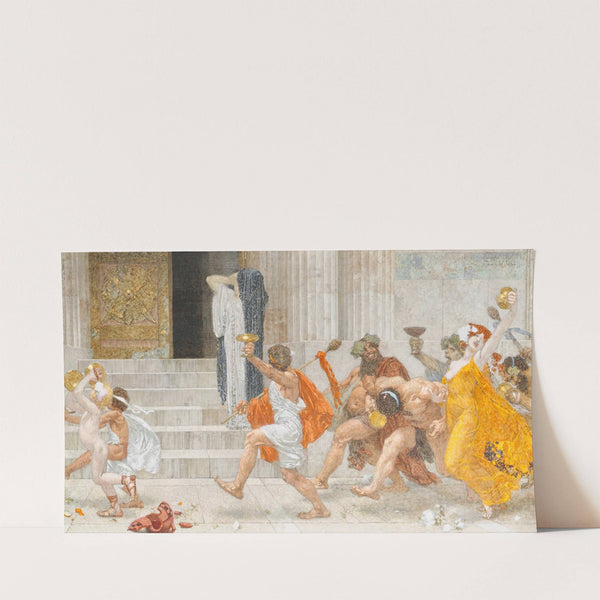 Discover the timeless elegance of "Kassandra" by Alexander Rothaug, a vibrant classical painting that captures a dynamic moment of ancient Greek life. This striking piece features a diverse group of figures engaged in various activities amidst a stone building backdrop...