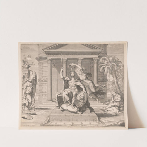 Louis XIV crowned by Victory, holding in his hand a portrait of Cardinal Mazarin by Francois de Poilly - Wall Art Print