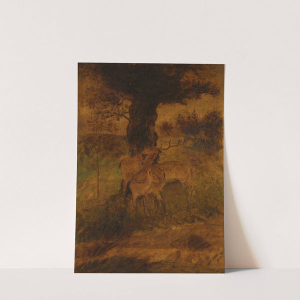 This captivating art print features "Pegasus Departing" by renowned artist Albert Pinkham Ryder. The painting showcases an ethereal scene where a majestic white Pegasus with glowing wings stands poised on the ground, ready to take flight. The Pegasus's form is...