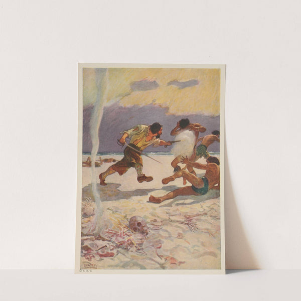 —and no sooner had he the arms in his hands but, as if they had put new vigor into him, he flew upon his murderers like a fury by N. C. Wyeth - Wall Art Print